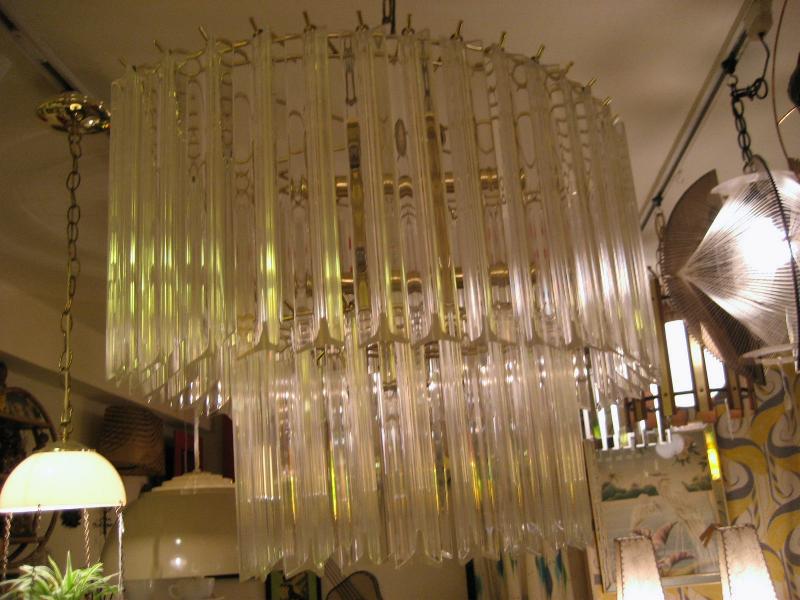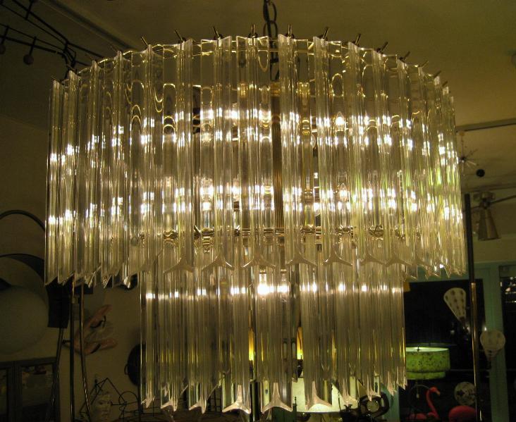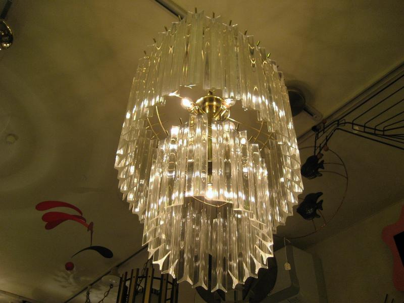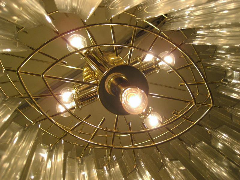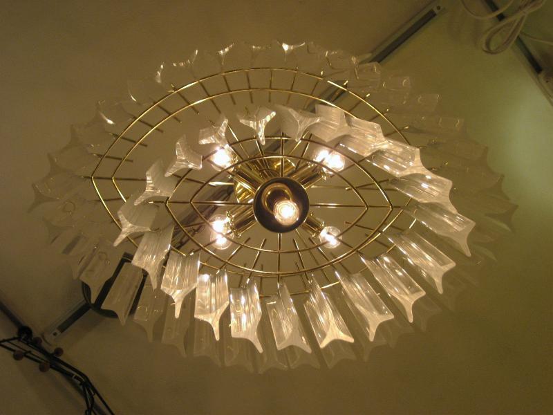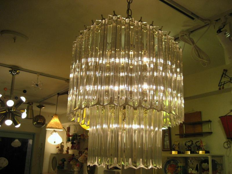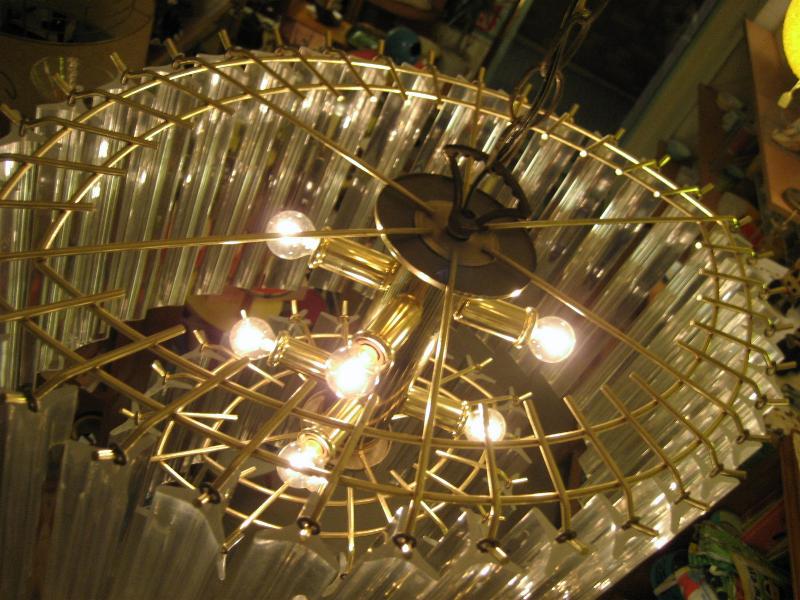 | ビンテージアトミックシャンデリア / 60-70年代 USA アトミックシェイプのビンテージシャンデリアランプ。全体のデザインは2段のオーバル(楕円形)シェイプで、インサイドベースはゴールドブラスワイヤーフレームのセンターにスプートニクタイプのランプソケットが上下各4本と真下に1本の合計9発付いたシリンダーボディ。フレーム先端に吊り下げるアクリルプレートは上段外側36本、下段内側20本の計56本。クールゴージャスなGOODライティングピース! 電源は引っ掛けシーリングに交換済みですのですぐに設置可能です。 ■電球について 5W ミニボール球9個付 口金サイズ:E12相当/市販されている物を使用しております ※設置は必ずチェーン吊り下げしてください |