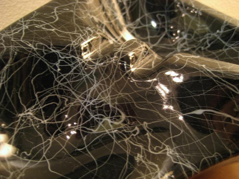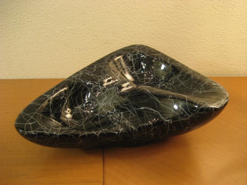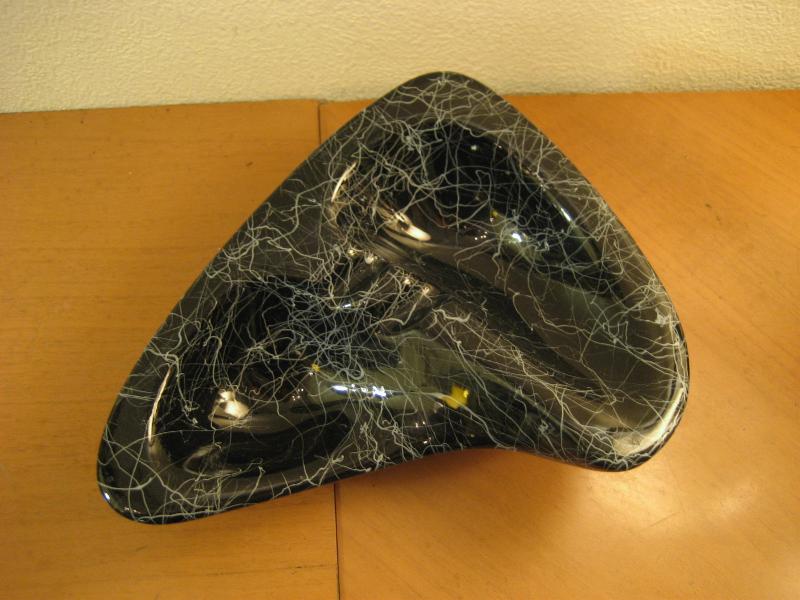 | アトミックブーメラン灰皿 / 50年代 USA. ブーメランシェイプの陶器製アトミックアッシュトレイ。ブラックベースにホワイトドレーピングがクールでGOODなビンテージテーブルピース。ディスプレイにも! |