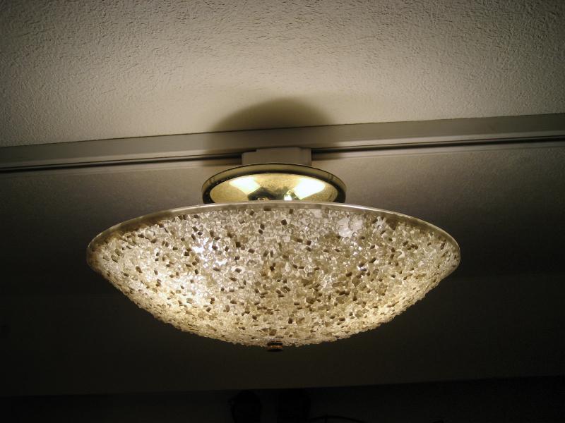 | ビンテージアトミックシーリングランプ / 50-60年代 USA. アクリルメイドの円盤シェードにアクリルロックフィニッシュしたアトミックランプ。ランプベースは3バルブソケット、ゴールドシーリングソケットカバータイプでほぼ未使用。クールでGOODなビンテージライティングピース! 玄関やセカンド照明としても最適です! 電源は引っ掛けシーリングに交換済みですのですぐに設置可能です。 |