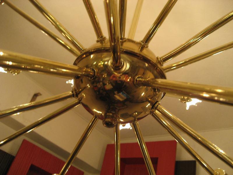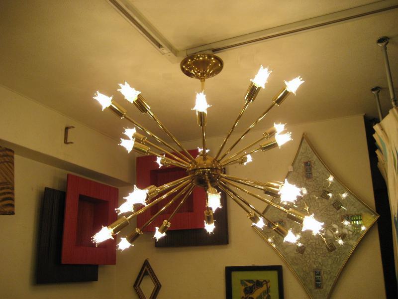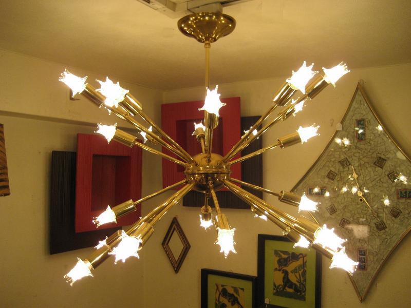 | ビンテージスプートニクランプ 50年代 USA. 24灯タイプ (スター球24個付き) アトミックスプートニクシーリングランプ / シャンデリア 24発のレアスプートニクです。クールでGOODなスーパーライティングピース、お部屋の雰囲気一発で変わります! 電源は家庭用引っ掛けシーリングに交換済ですのでかんたん設置、すぐに使用できます。 ※スター球は現行品です。 |