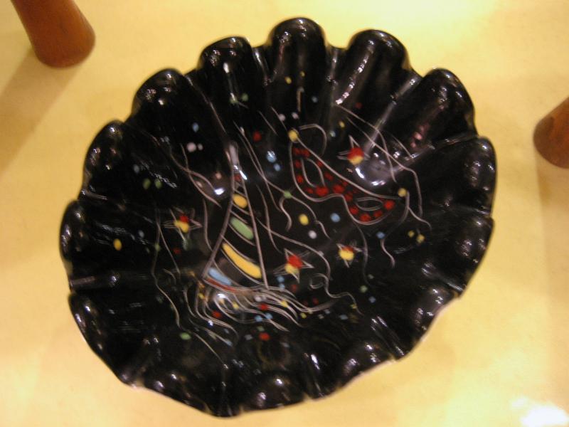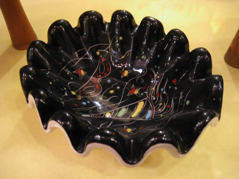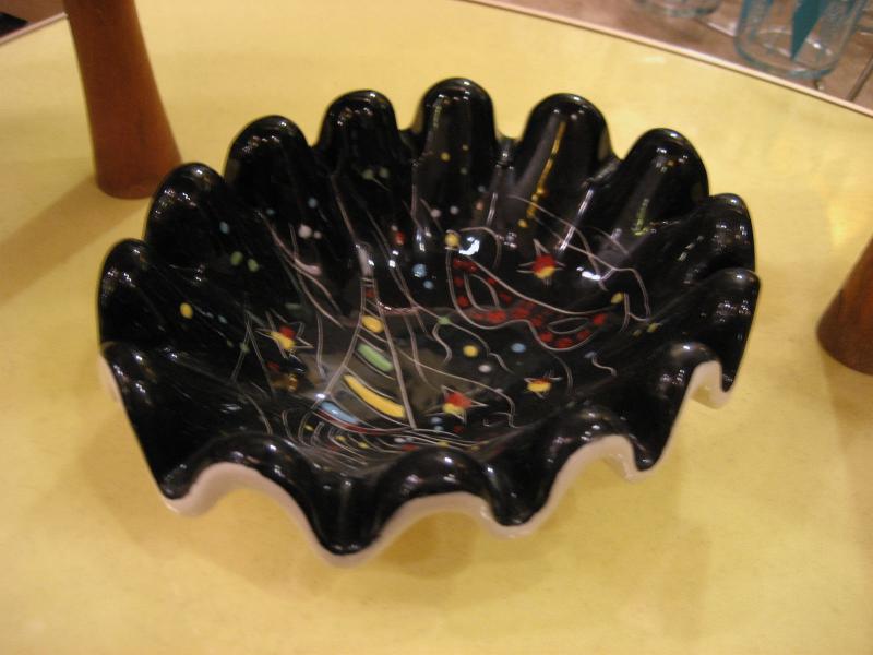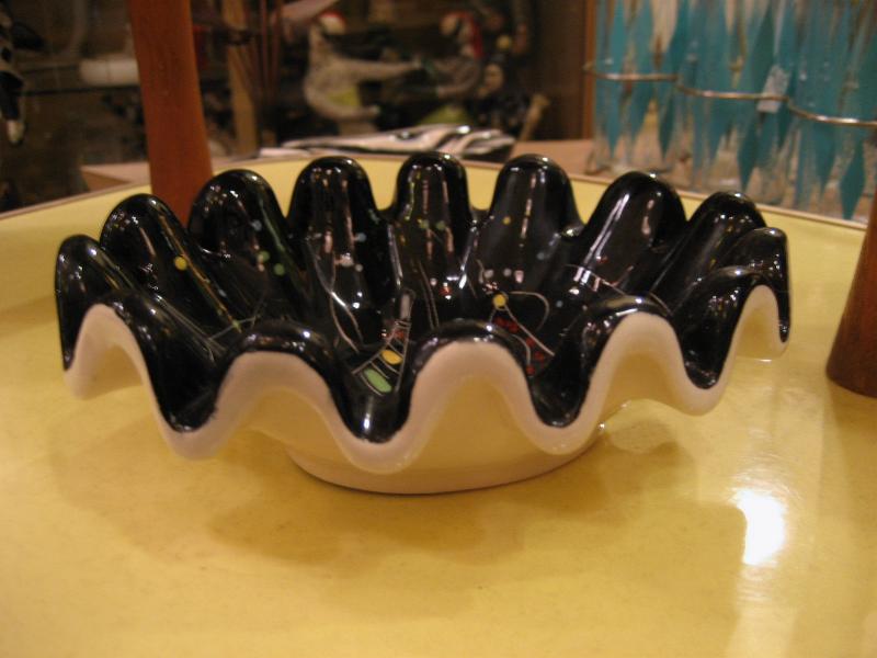 | ビンテージハーレクインアッシュトレイ / 50-60年代 USA. MADE IN ITALY. 陶器製アトミックシェイプのクールな灰皿。ボディ下側はホワイト、上側はブラックベースでハーレクインプリント。クールでGOODなビンテージテーブルピース。ディスプレイにも! 底面マークにシリアルナンバー入り。 |