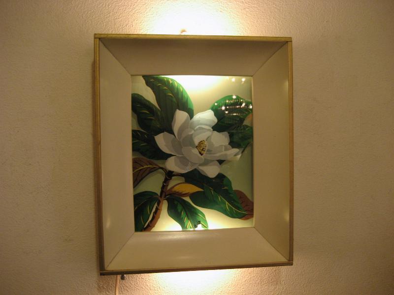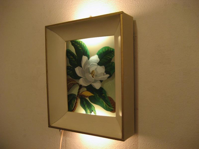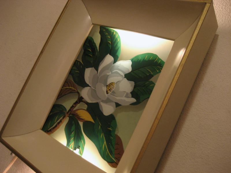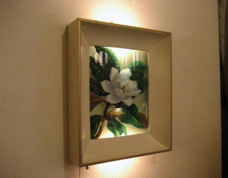 | ビンテージライトアップウォールデコ 50年代 USA. Formed Products Co. メタルボックスフレームの上下ライトアップが可能なビンテージフレームウォールデコ。ガラスに直接ペイントされたフラワーアートがライトアップすることによって浮かびあがるような感じがGOOD。クールビンテージウォールデコレーションピース! 電源は家庭用コンセント対応コードでスイッチはフレーム下部に付いていてロータリータイプ(3Way)です。 |