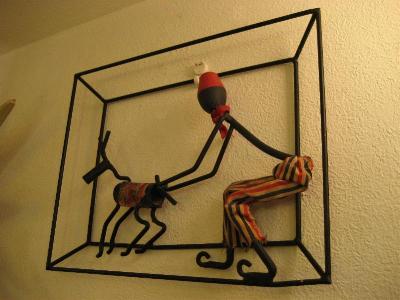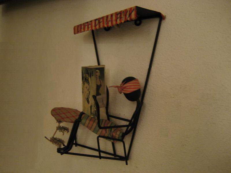 | ペアビンテージワイヤーフレームウォールデコ / 40-50年代 USA. ビンテージのアイアンウォールデコ。男女ペアでそれぞれカフェでゆったりと過ごしている感じでしょうか。。。女性の方はファッション誌を見ていて足元にプードル。男性はニュースペーパーを読んでいます。こちらのペア壁掛けは写真2枚目のように壁掛けだけでなく置いて飾ることも可能です。ウォールディスプレイにGOODなビンテージデコレーションピース! |