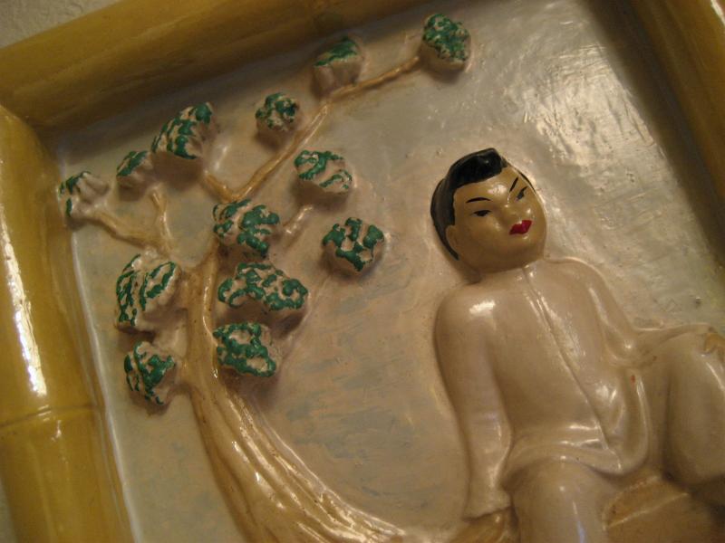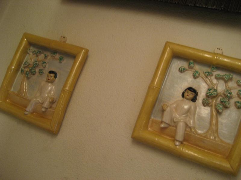 | ペアビンテージオリエンタルウォールデコ / 50年代 USA. チョークメイドフレームシェイプのオリエンタル壁掛けです。50年代に多く見られたフレームアートタイプでフレームはバンブーデザイン。絵を立体化したデザインになっています。クールでGOODなビンテージウォールディスプレイピース! |