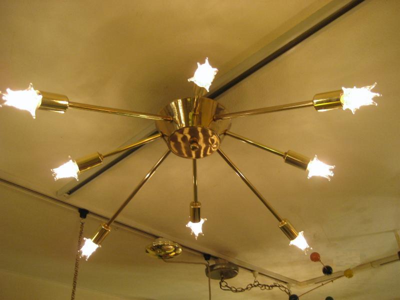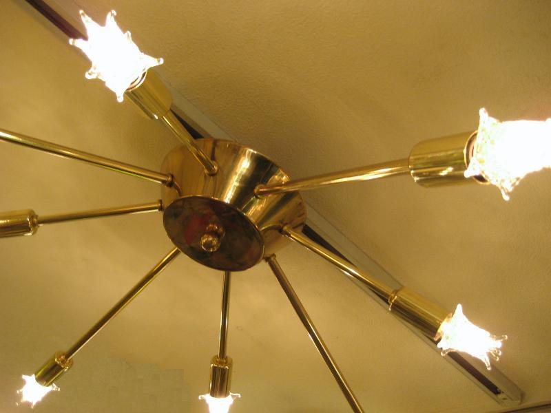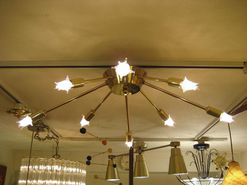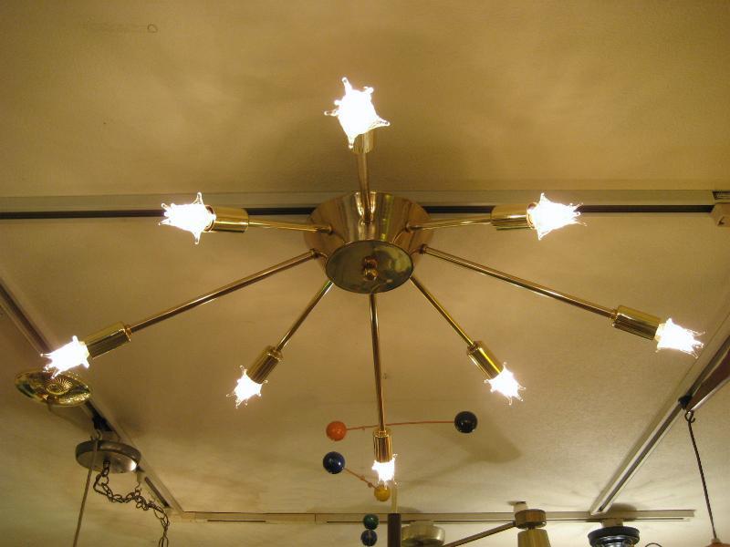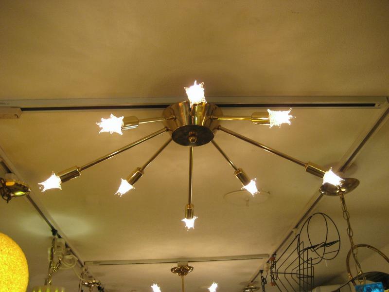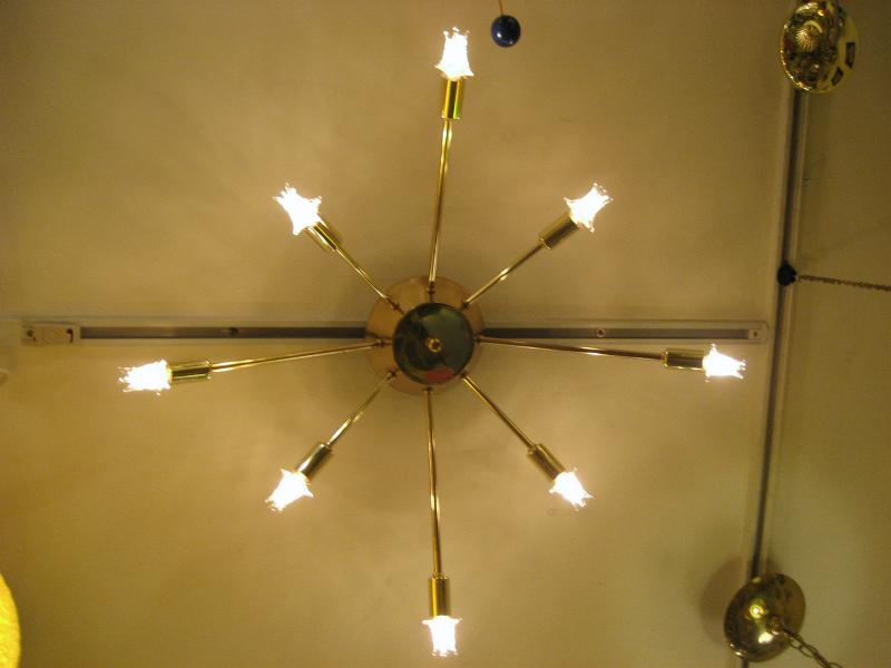 | ビンテージスプートニクランプ 50年代 USA. 8灯タイプ (スター球8個付き) アトミックスプートニクシーリングランプ / シャンデリア アトミックシェイプのセンターベースから長短8本アームのビンテージスプートニク。クールでGOODなスーパーライティングピース、お部屋の雰囲気一発で変わります! 電源は家庭用引っ掛けシーリングに交換済ですのでかんたん設置、すぐに使用できます。 ※スター球は現行品です。 |