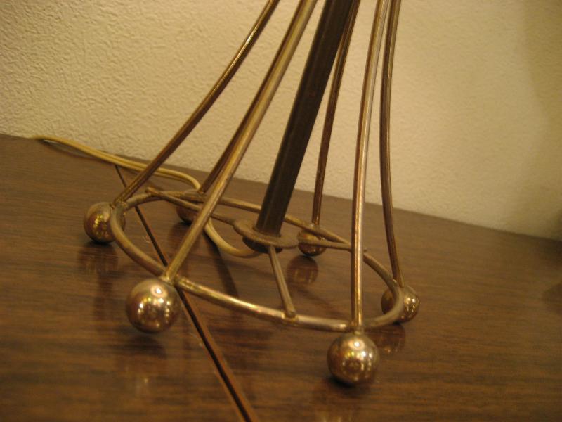 | アトミックビンテージシェードランプ / 50年代 USA. ブラスワイヤーメイドのアトミックベースがクールなビンテージシェードランプ。シェードはファイバーグラスメイドでバルブにクリップオンするタイプです。クールでシンプルGOODなアクセントライティングピース! 電源は家庭用コンセント対応コード、スイッチはランプソケットに付いていてスライドタイプです。 |