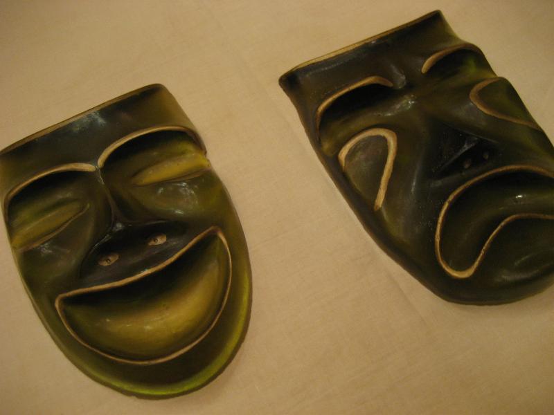 | ペアビンテージツーフェイスウォールデコ / 60年代 USA. ヘビーアクリルメイドの泣き笑い壁掛けです。ゴールドアクセントがクールでGOODなビンテージウォールディスプレイピース! |