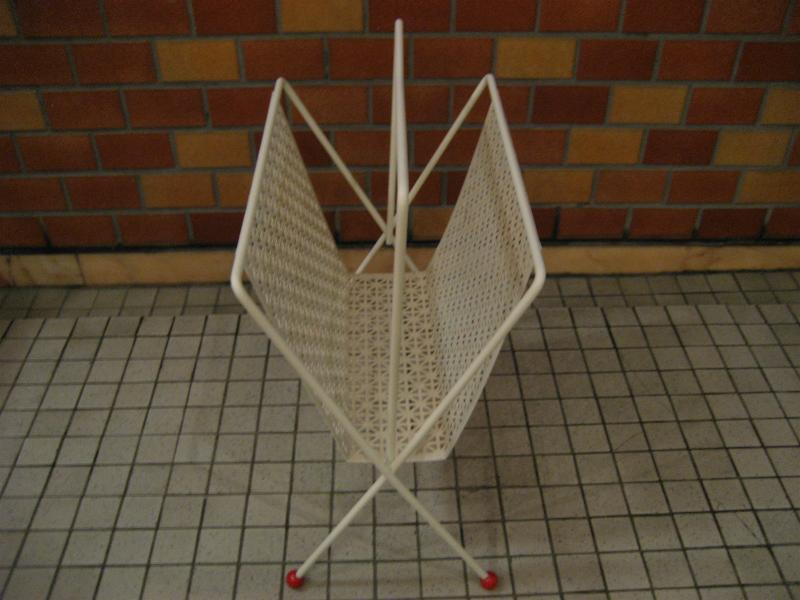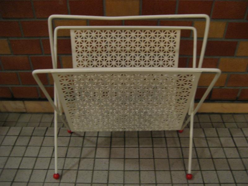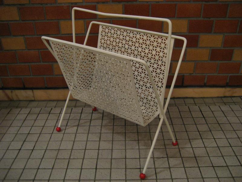 | ビンテージマガジンラック / 50-60年代 USA. アイアンメイドのマガジンラックです。オフホワイトカラーペイントで4本レッグにはレッドカラーのプラスチックボールアクセント。ソファやチェアサイドにGOODなビンテージフロアピース! |