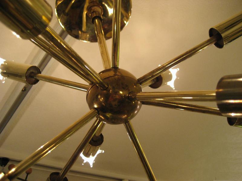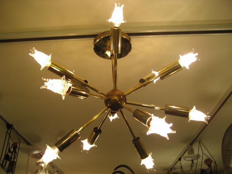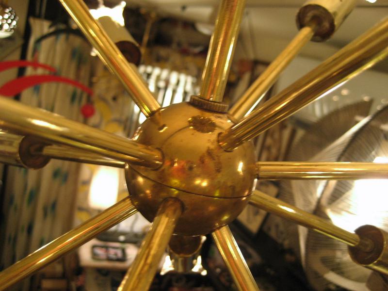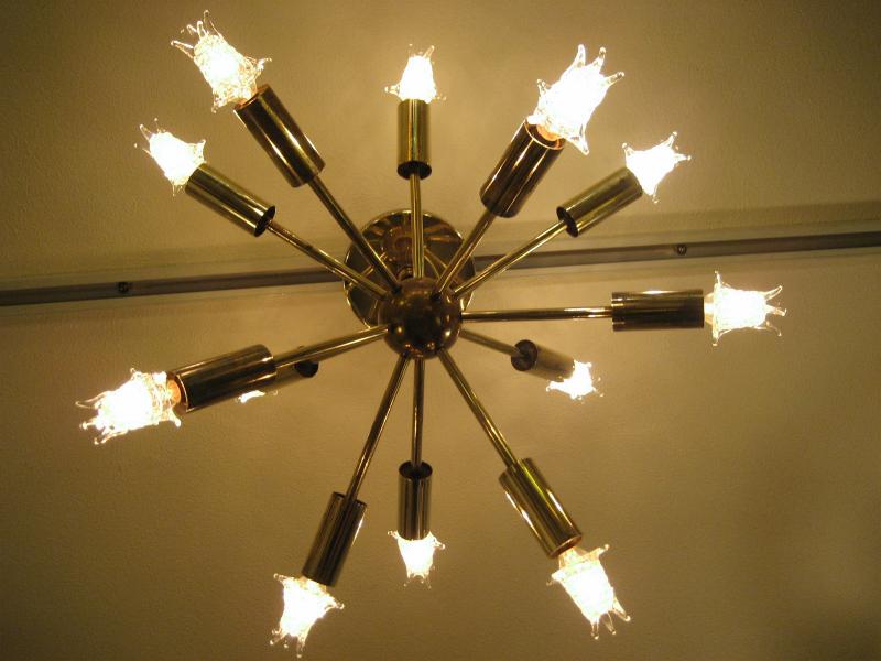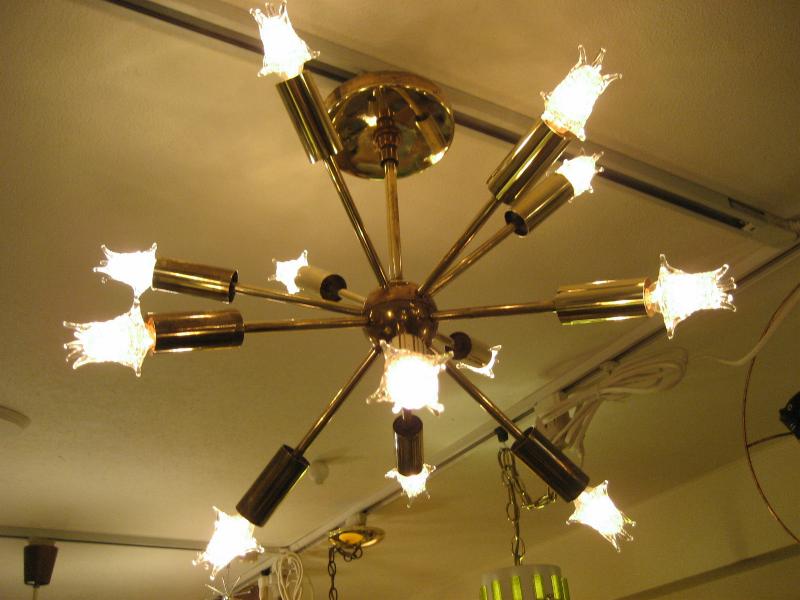 | ビンテージスプートニクランプ 50年代 USA. 12灯タイプ (スター球12個付き) アトミックスプートニクシーリングランプ / シャンデリア 12発のレアなアームねじ込み式ビンテージスプートニクです。クールでGOODなスーパーライティングピース、お部屋の雰囲気一発で変わります! 電源は家庭用引っ掛けシーリングに交換済ですのでかんたん設置、すぐに使用できます。 ※スター球は現行品です。 |