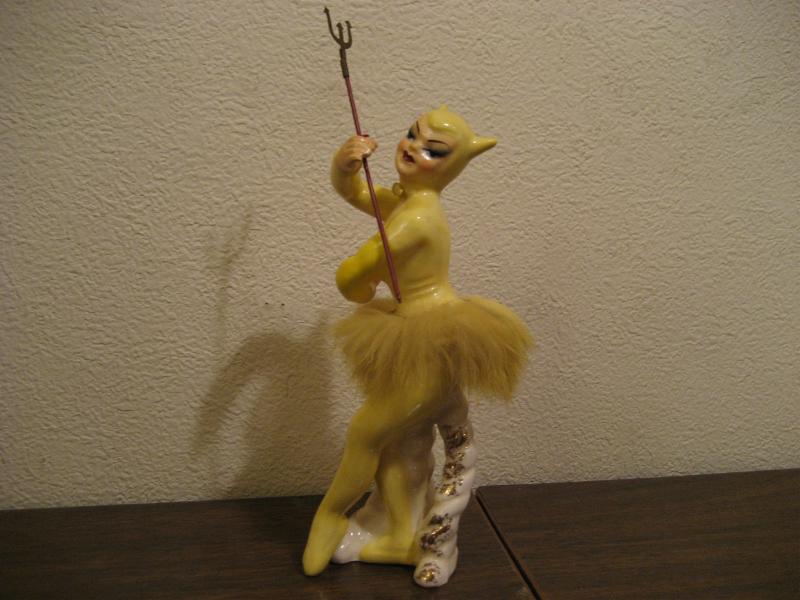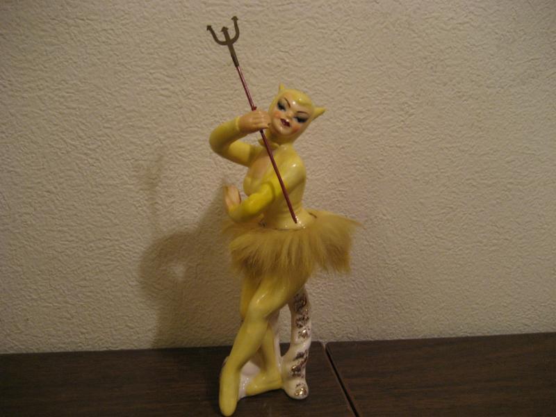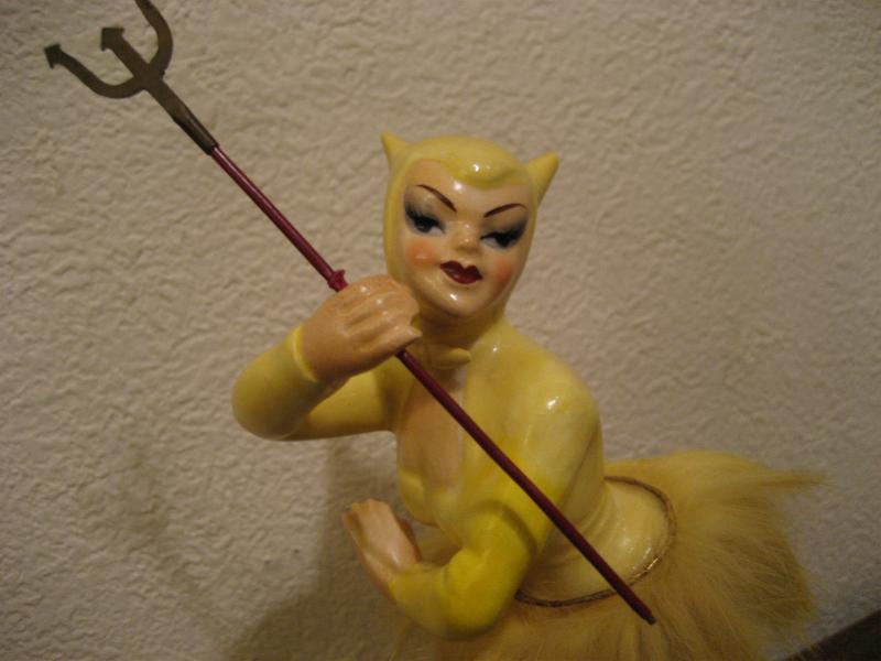 | ビンテージデビル置物 / 40-50年代 USA 陶器製デビルレディの置物。カラーはイエロー。ウェストにファー、手にフォークを持っています。クールな顔立ちがGOODなビンテージコレクティブルピース! |