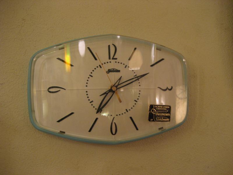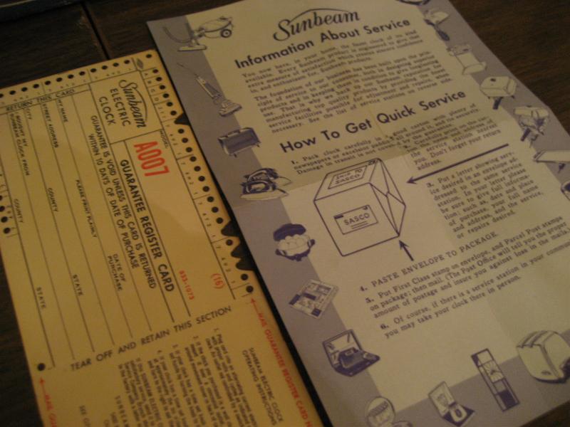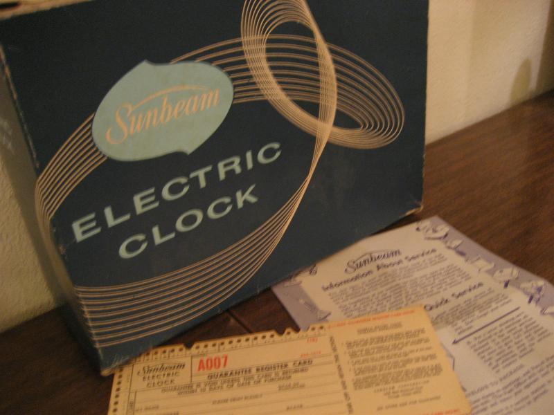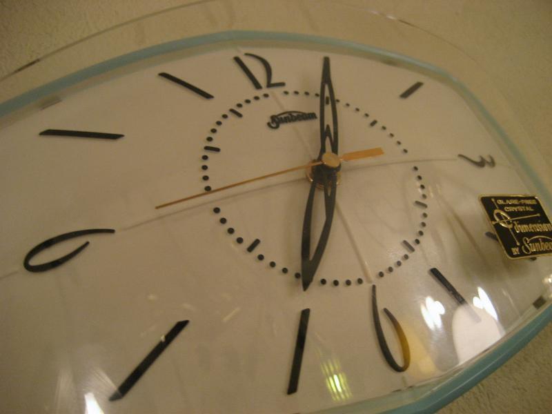 | ビンテージアトミックウォールクロック / 50-60年代 USA. サンビーム社 デッドストック(未使用) アトミックシェイプのクールな壁掛け時計です。オリジナルBOX入りデッドストック。本体正面右下にステッカー、当時のギャランティカード(保証書)、サービス&メンテナンスパンフが付いています。BOXの絵柄も時代を反映したアトミックデザイン。クールでGOODなビンテージタイムピース! ムーブメントはバッテリータイプ(単3x1個使用)に交換済みでですので時間は正確です。 |
