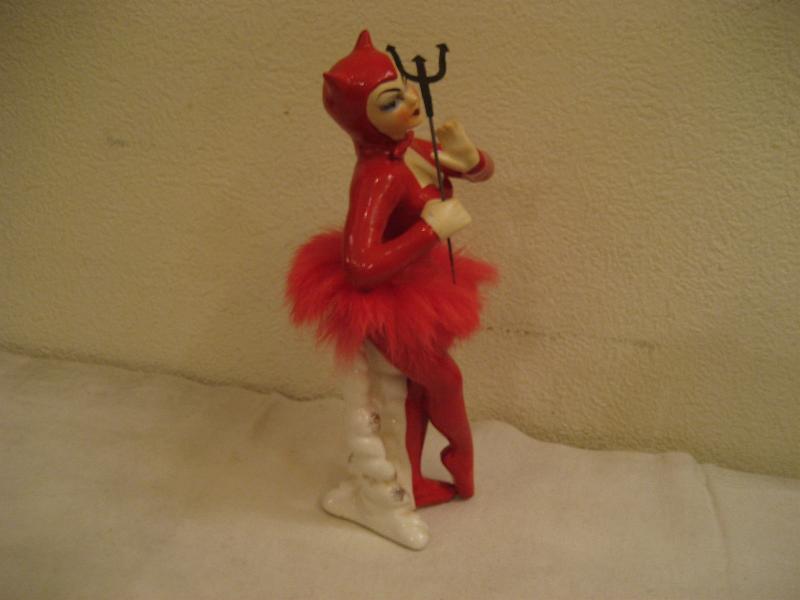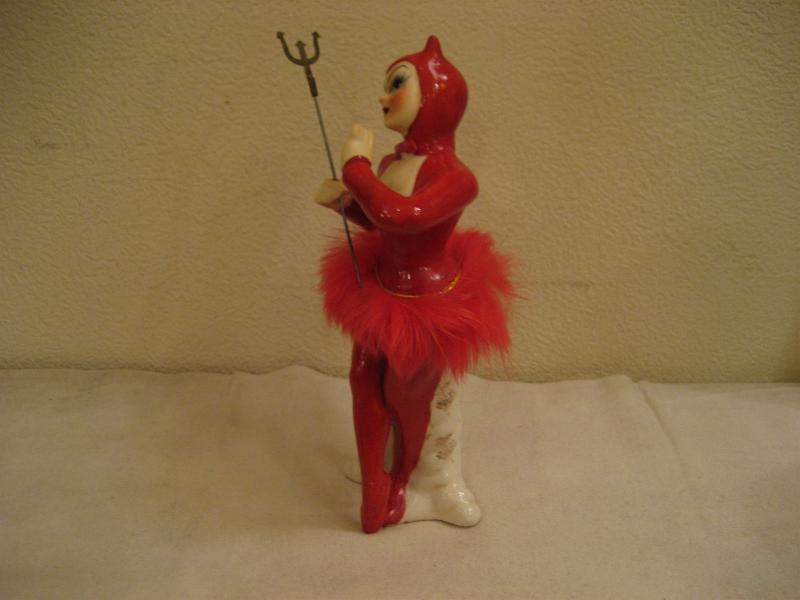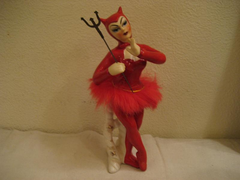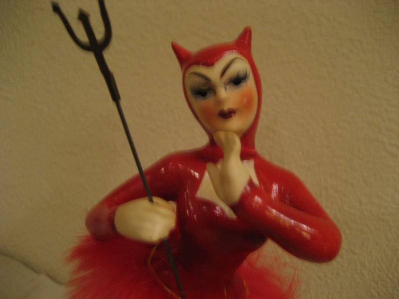 | ビンテージデビル置物 / 40-50年代 USA 陶器製デビルレディの置物。カラーはレッド。ウェストにファー、手にフォークを持っています。底面に"JAPAN"スタンプ有り。クールな顔立ちがGOODなビンテージコレクティブルピース! |