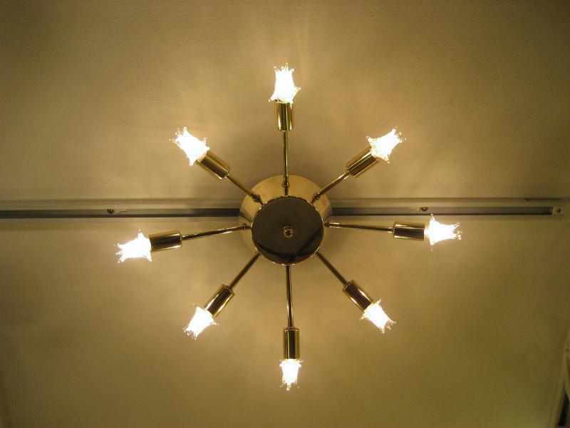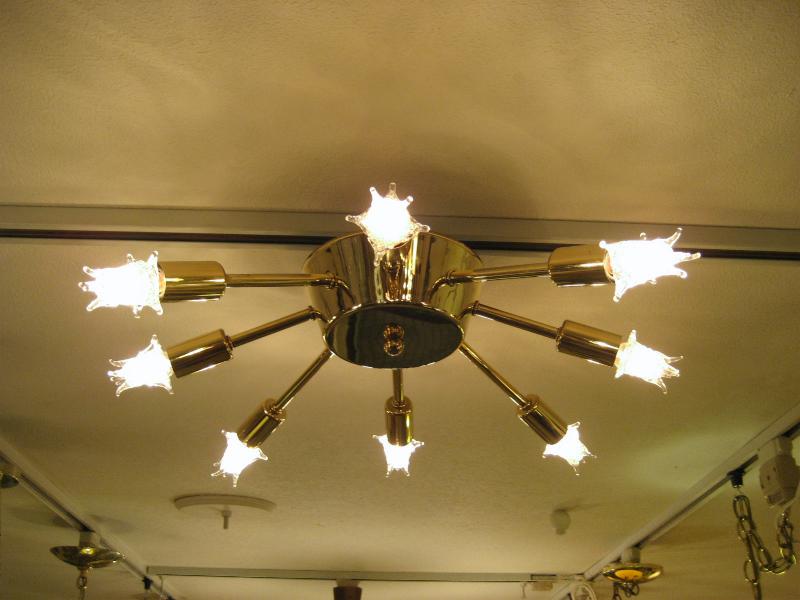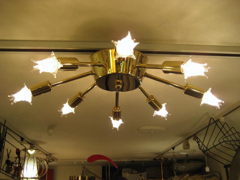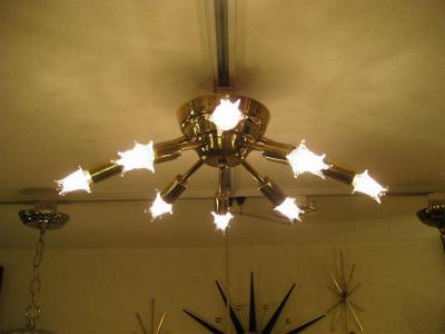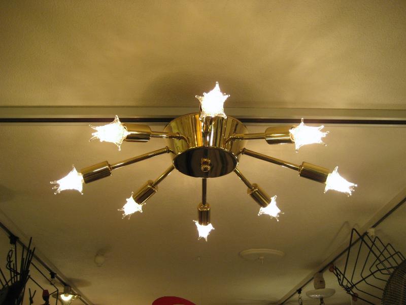 | ビンテージスプートニクランプ 50年代 USA. 8灯タイプ (スター球8個付き) アトミックスプートニクシーリングランプ / シャンデリア アトミックシェイプのセンターベースから長短8本アームのビンテージスプートニク。クールでGOODなスーパーライティングピース、お部屋の雰囲気一発で変わります! 電源は家庭用引っ掛けシーリングに交換済ですのでかんたん設置、すぐに使用できます。 ※スター球は現行品です。 |