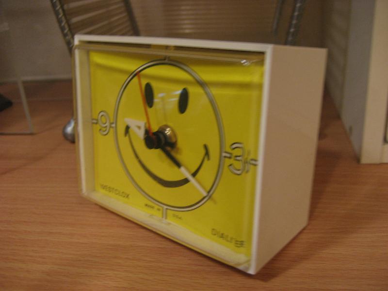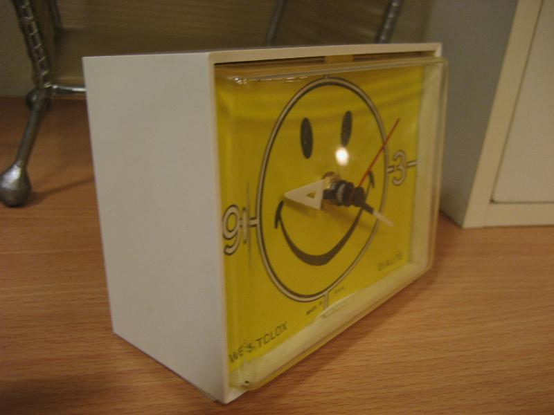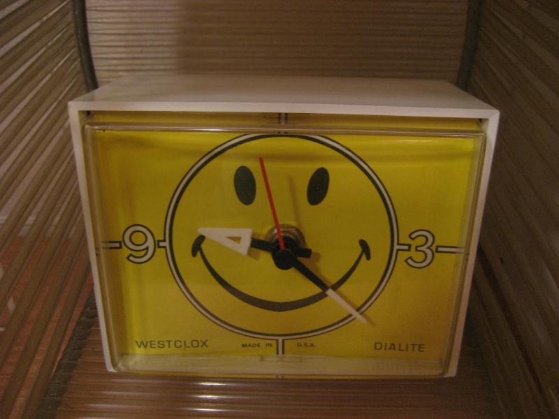 IN USA. スマイルのビンテージ置時計です。ムーブメントはバッテリー式(単3x1コ使用)に交換済ですので時間は正確です。 |