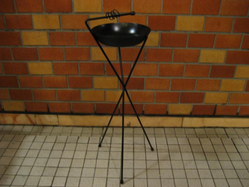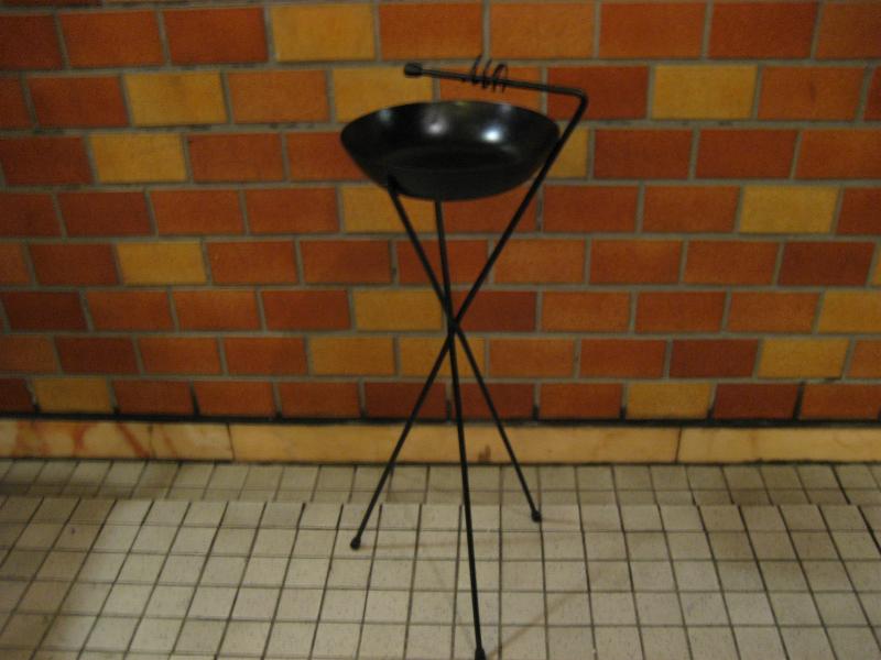 | ビンテージアッシュトレイスタンド / 50年代 USA. ブラックアイアンメイドで3本レッグフレームの灰皿スタンド。ソファやチェアサイド、ベランダなどにクールでGOODなビンテージフロアピースです! |