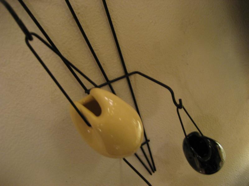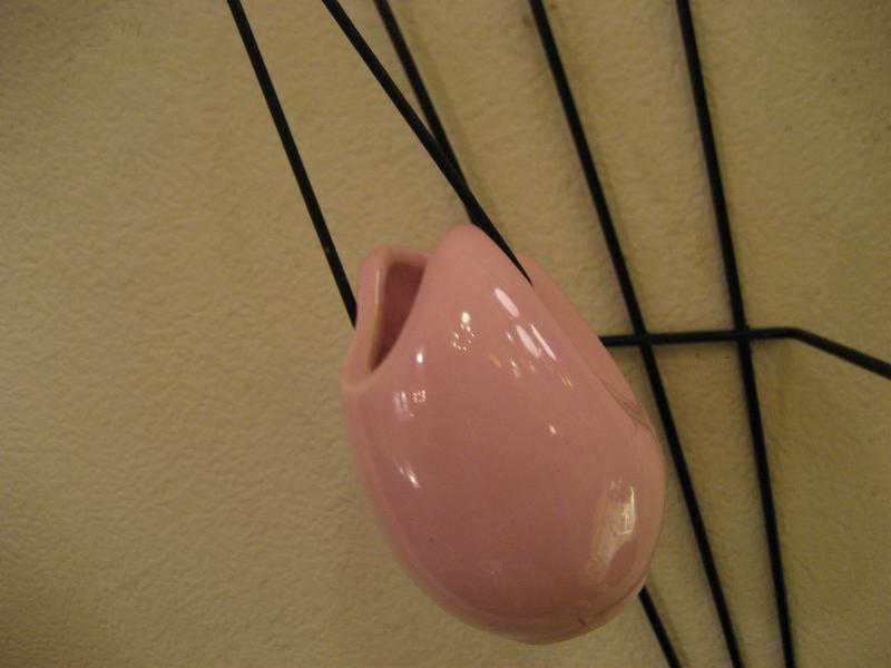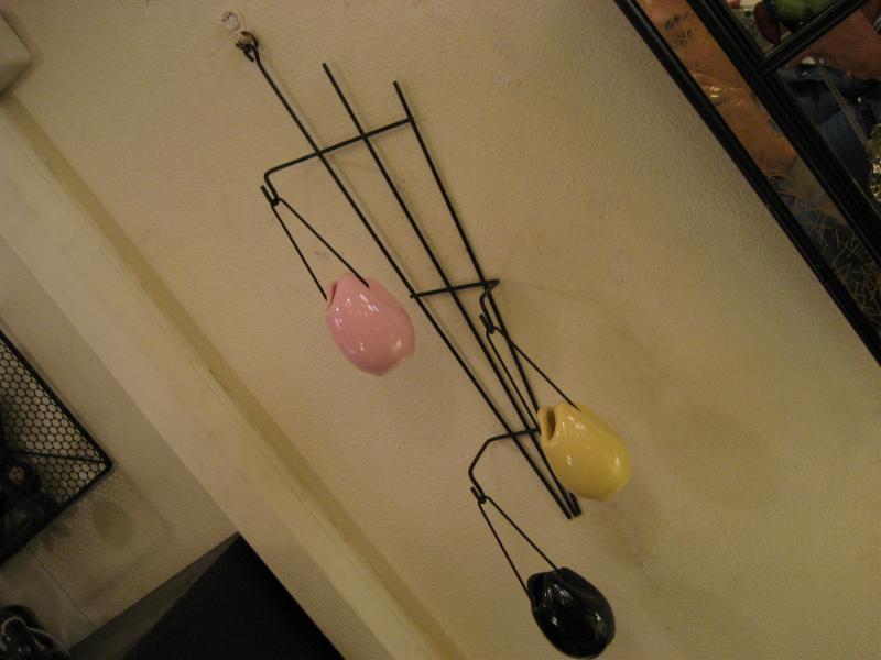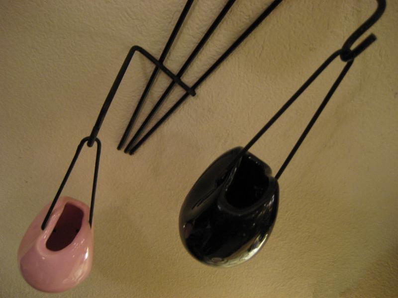 | アトミックウォールプランター / 50年代 USA 3ポットのビンテージ壁掛けプランター。ブラックアイアンメイドのアトミックベースに3カラーのセラミックポットを吊り下げています。カラーポットのポジションは3ヶ所のアームに自由にかけ変えOK。ディスプレイ性が高く、クール&キュートなGOODアトミックウォールデコピース! |