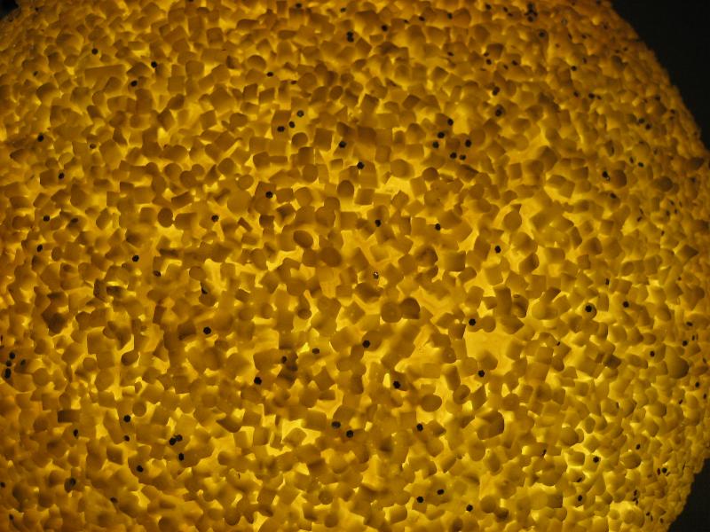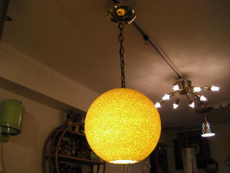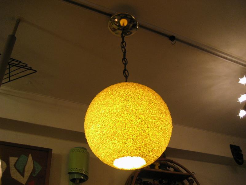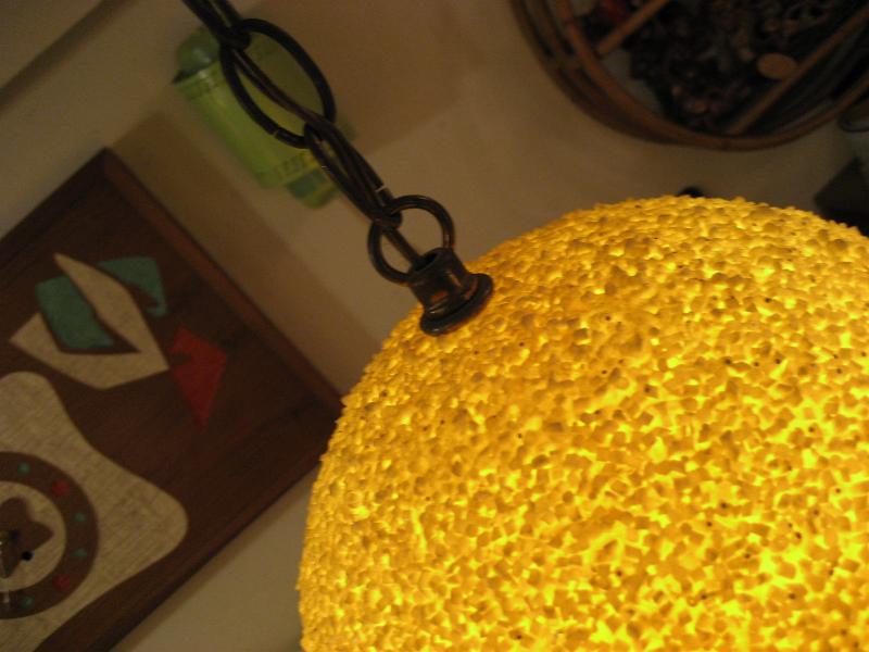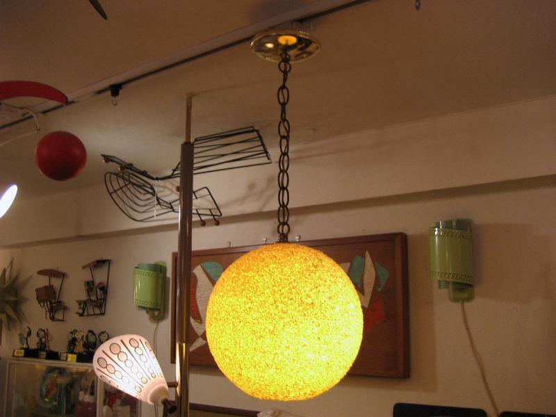 | ビンテージアトミックペンダントランプ / 60年代 USA. きれいなモザイクロックメイドのボールシェイプシーリングランプ。メインルームはもちろん、玄関などセカンド照明としてもGOODなシンプルモダンライティングピース!電源は家庭用引掛けシーリングソケットに交換済ですからすぐに設置可能です。 |