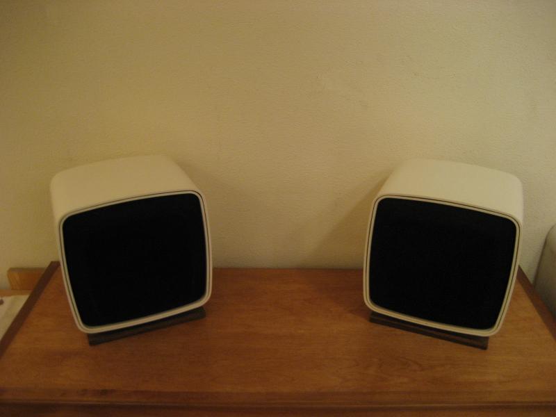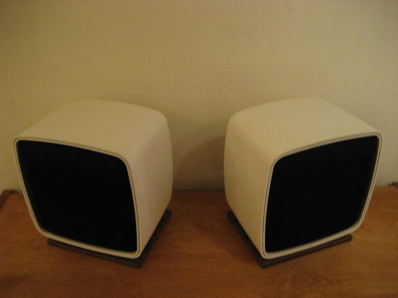 | ビンテージアトミックスピーカーセット / 70年代 ZENITH, USA (ZENITH-JAPAN) キューブシェイプのペアスピーカー。ウッドのスクエアベースにオフホワイトボディ。ジャックはピンタイプ。シンプルモダンでGOODなビンテージピース! もちろん動作確認済みです。 |