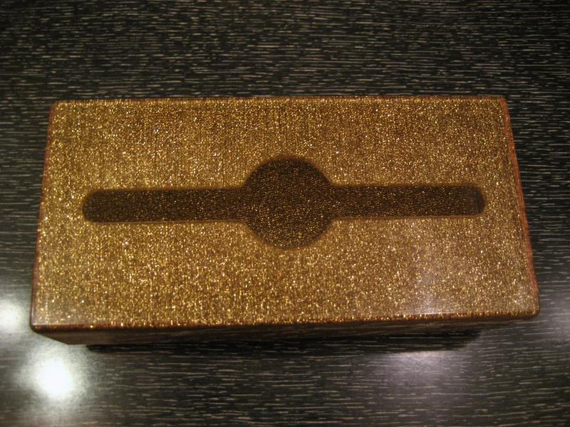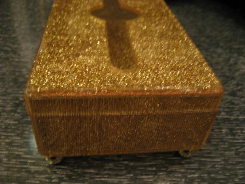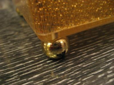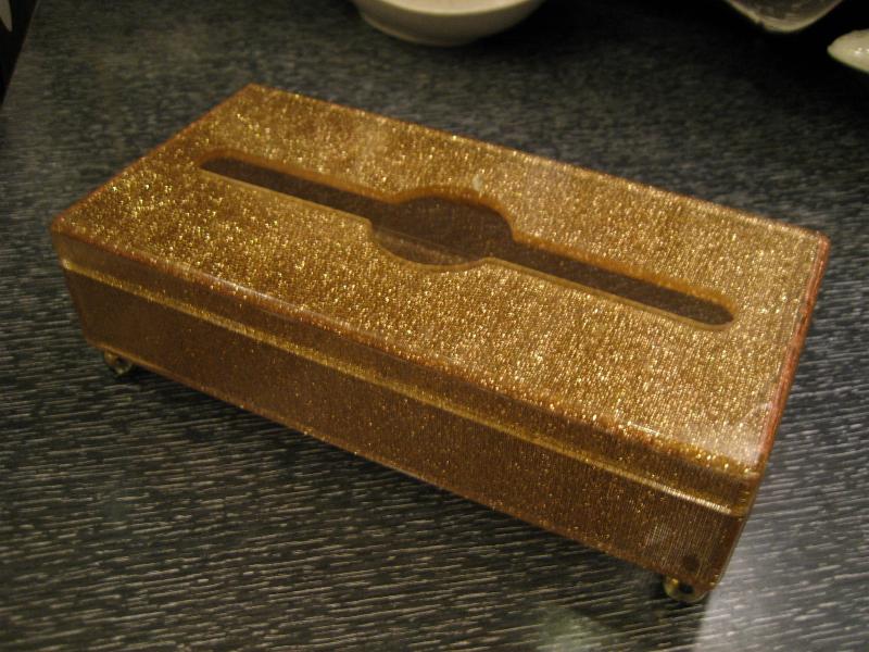 | ビンテージアトミックティッシュケース (ホルダー / ボックス) / 50-60年代 USA. ゴールドボールレッグが付いたビンテージティッシュケース。アクリルベースにラメファブリックを封入したマテリアル。クールゴージャスなビンテージバニティピース! |