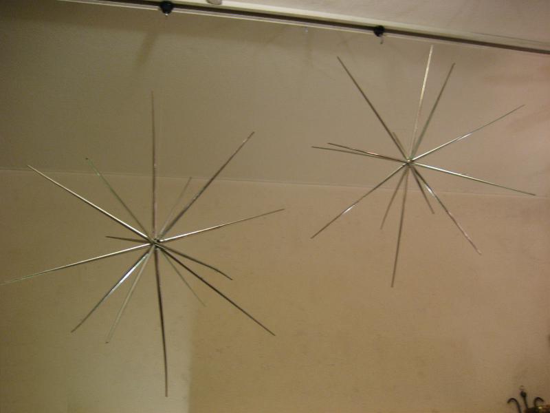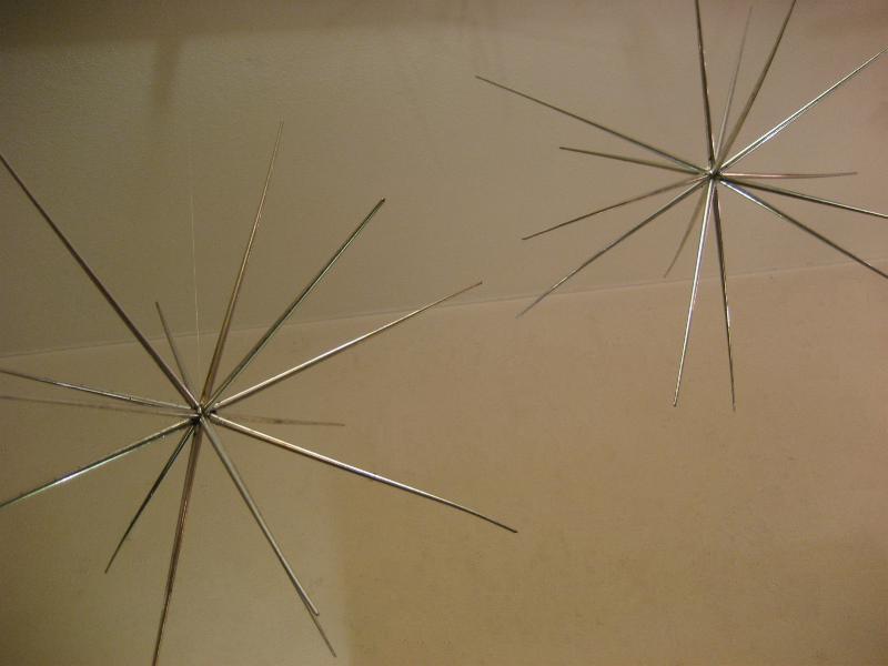 | アトミックビンテージスプートニクデコ 50-60年代 USA. プラスチックメイド。レアなスプートニクシェイプのビンテージハンギングモビールデコレーション。ピアノ線などを使用して天井から吊下げディスプレイしたり用途は多彩。。。 14発アームのクールでGOODなアトミックディスプレイピース! |