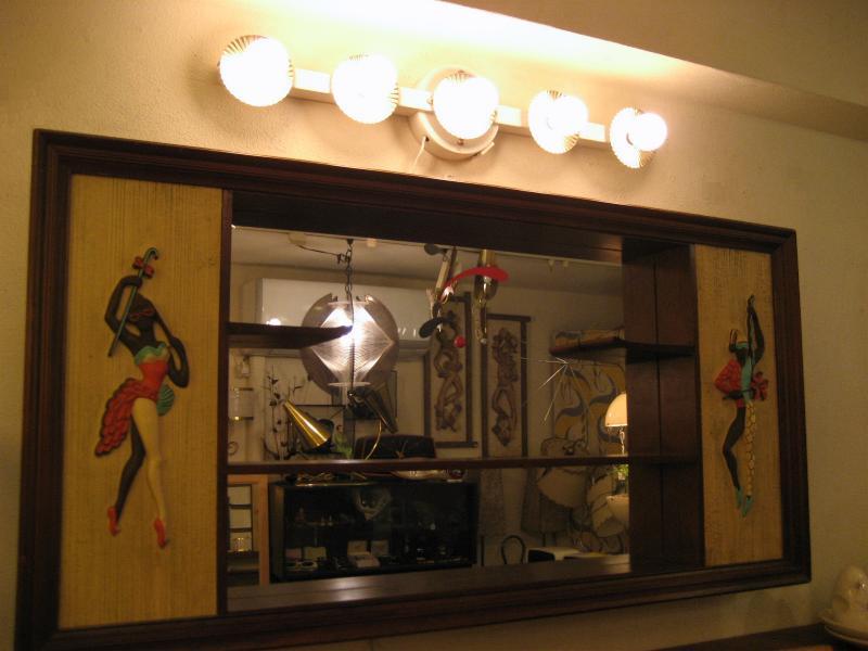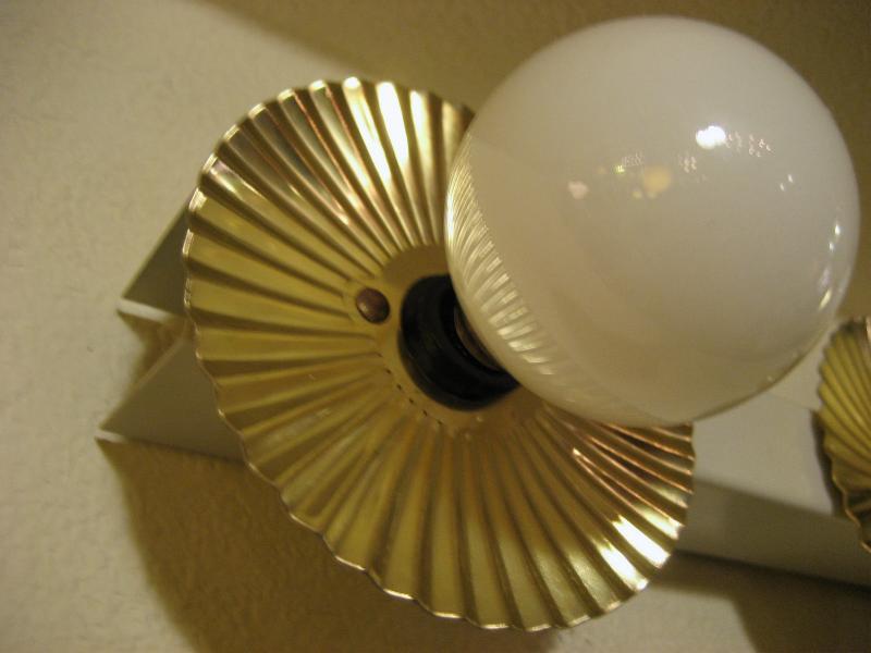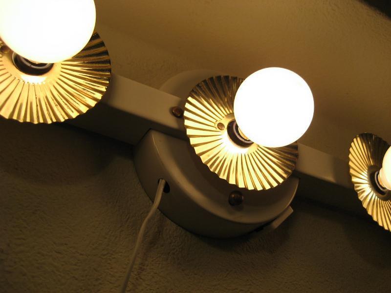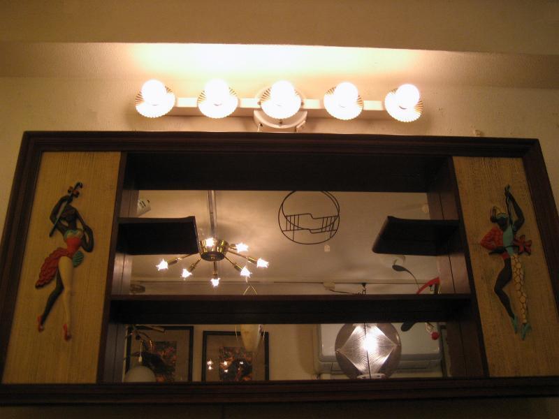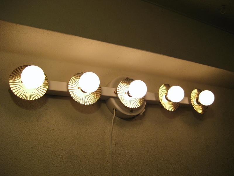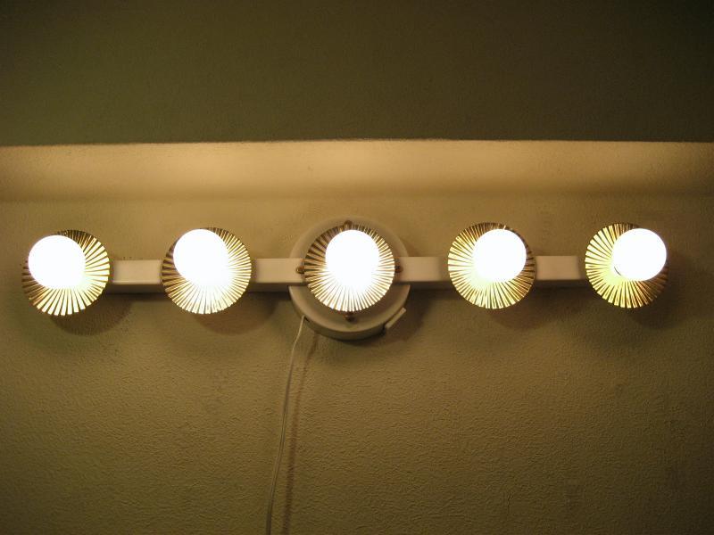 | ビンテージハリウッドウォールランプ / 50年代 USA. 5連バルブのアトミックドレッサーランプ。バルブソケット部分にブラスメイドのデコレーションカバーが付いていて、電球の明かりを反射するので独特の広がりを見せてくれます。センターマウントベースにコンセントが付いていますのでドライヤーなども使用できて便利。。。 ミラー上部に設置してメイクアップランプとして使用するものですがアクセントランプとしてもクールでGOODなビンテージライティングピース!電源は家庭用コンセント対応です。スイッチはコードに付いていてロータリータイプです。 ■使用電球:市販電球5個付き(ワット数:10W/1個) 口金サイズ:E12 |