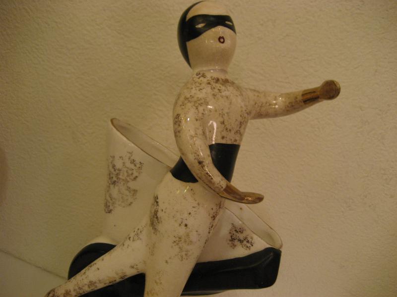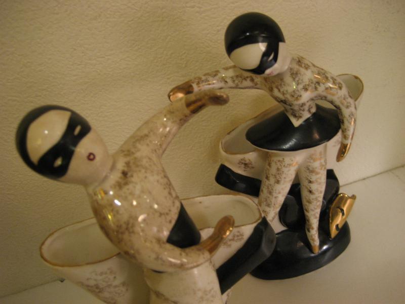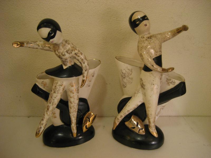 | ビンテージハーレクインプランター / 50年代 ナプコ社 USA. 陶器製のペアハーレクインダンサー置物。後側がプランターベースになっていて、足元にツーフェイスと楽器がデコレーションされています。 クールでGOODなビンテージデコピース! |