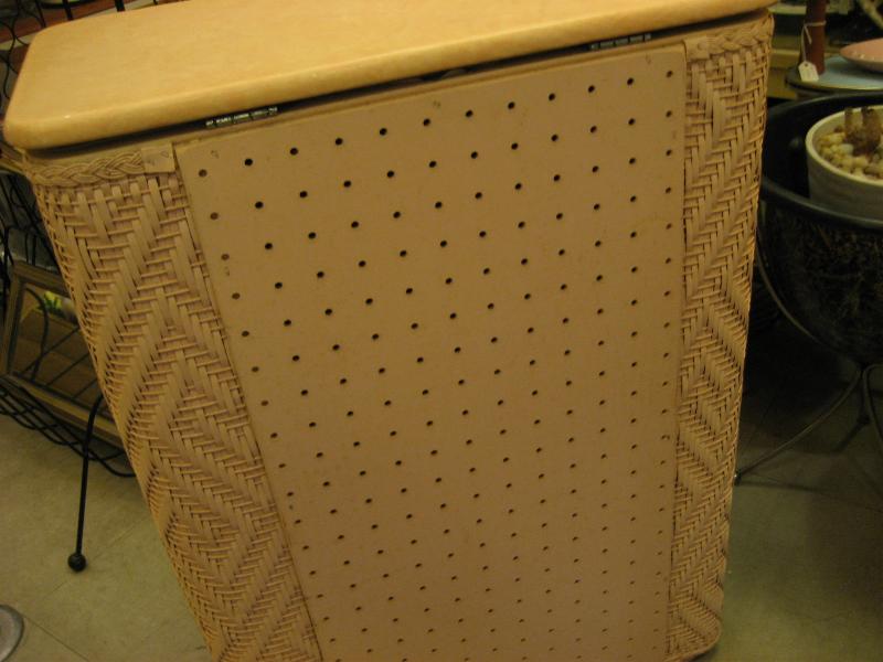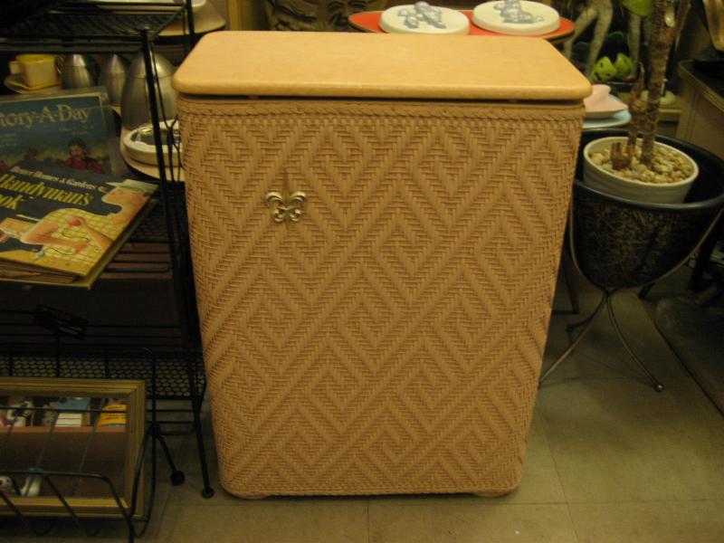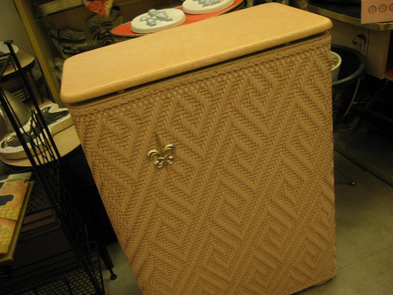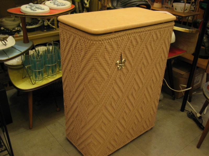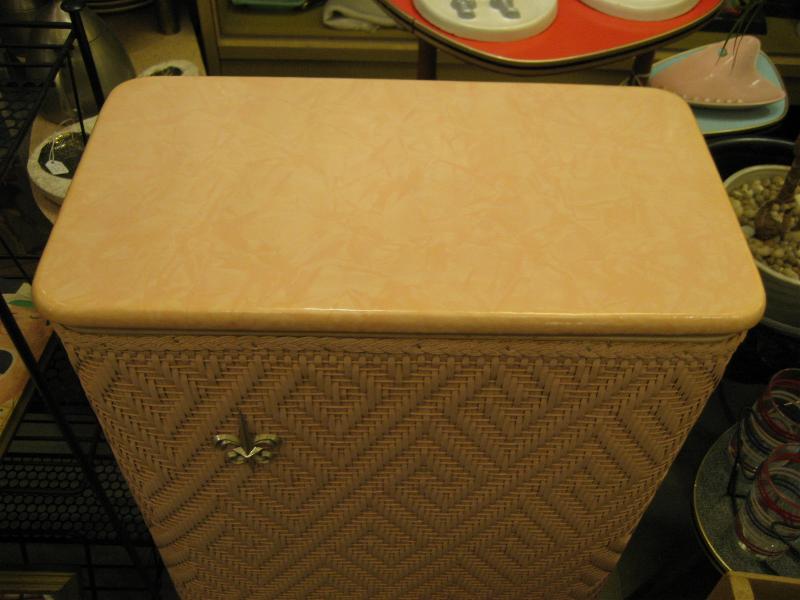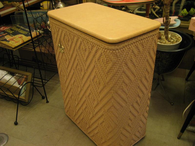 | アトミックビンテージハンパー / 50年代 RED-MAN社製 MADE IN USA ピンクベースのビンテージハンパー(洗濯物入れ)です。フロントにゴールドアクセント。洗濯するのが楽しくなるクールでキュートなビンテージピースです! |