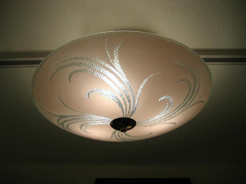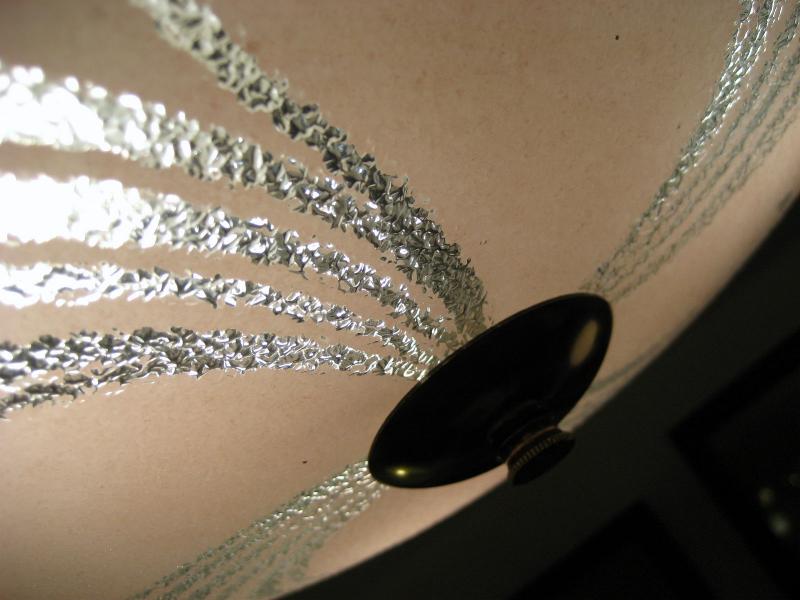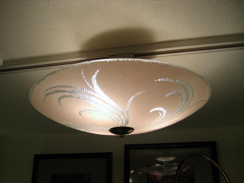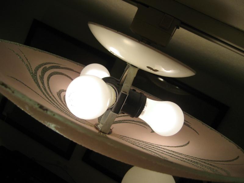 | ビンテージアトミックシーリングランプ / 50年代 USA 表面に凹凸感のあるガラスメイドのアトミックブーメラン柄シェードにトリプルライトソケットのクールな天井シーリングランプ。メイン照明はもちろん、アクセント照明としてもGOODなビンテージライティングピース! 電源は引っ掛けシーリングに交換済みですのですぐに設置可能です。 |