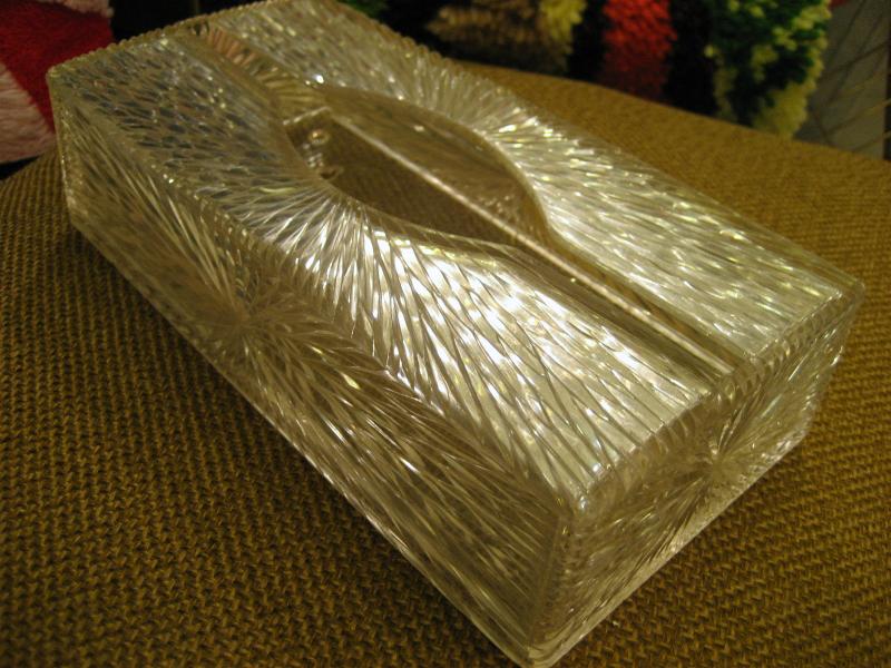 | ビンテージティッシュケース / 50年代 MADE IN USA クリアアクリルメイドのビンテージティッシュボックス。底面スライドオープンタイプでウォールハンギングもOKです。スターバーストデザインのクールでキュートなビンテージバニティピース! |