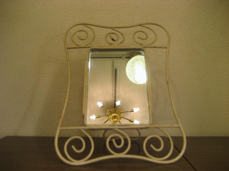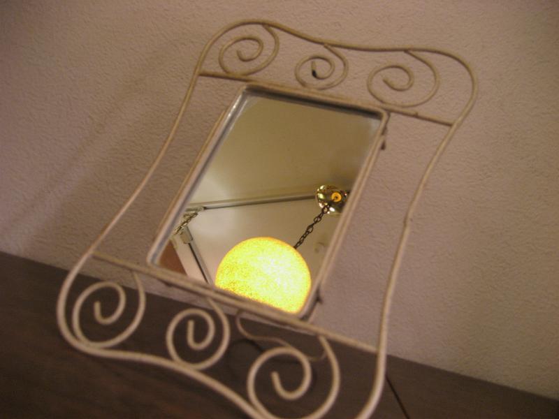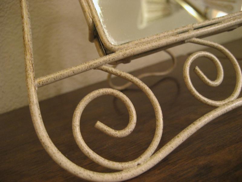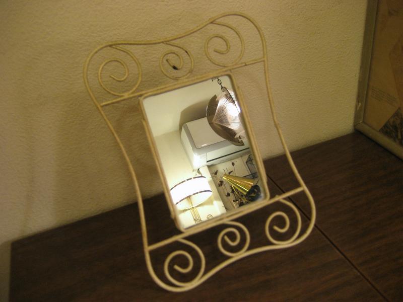 | ビンテージアトミックシェルフミラー / 50-60年代 USA アイアンデコフレームのシェルフミラー。フレームはアイボリーベースに細かいゴールドグリッターアクセント。メイクアップやフォトフレームとして使用してもGOODなビンテージピース! |