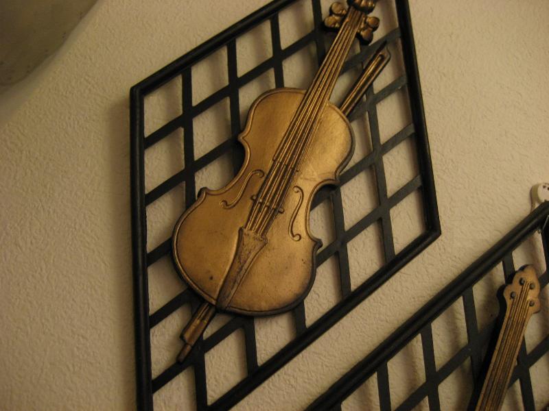 | ビンテージバイオリンバンジョーウォールデコ 50-60年代 USA. アイアンメイドの楽器のペア壁掛け。ハーレクインシェイプのブラックカラーベースにゴールドペイント。クールでGOODなビンテージウォールデコレーションピースです! |