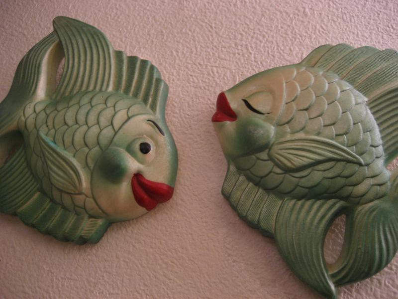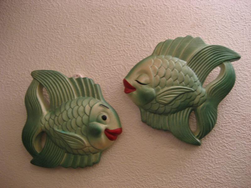 | ビンテージペアフィッシュウォールデコ / 50年代 USA ミラースタジオ社 ©1954 チョーク製のサカナの壁掛けセットです。グリーンベースのキュートカラー。キッチンやバスルーム、KIDSルームなどにもGOODなビンテージウォールデコピース! |