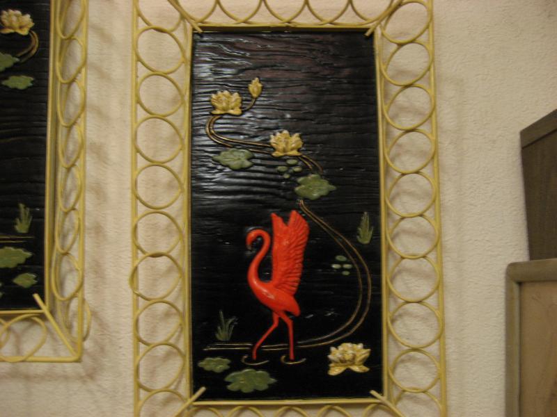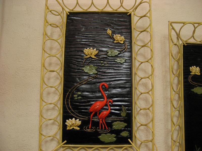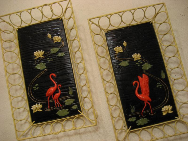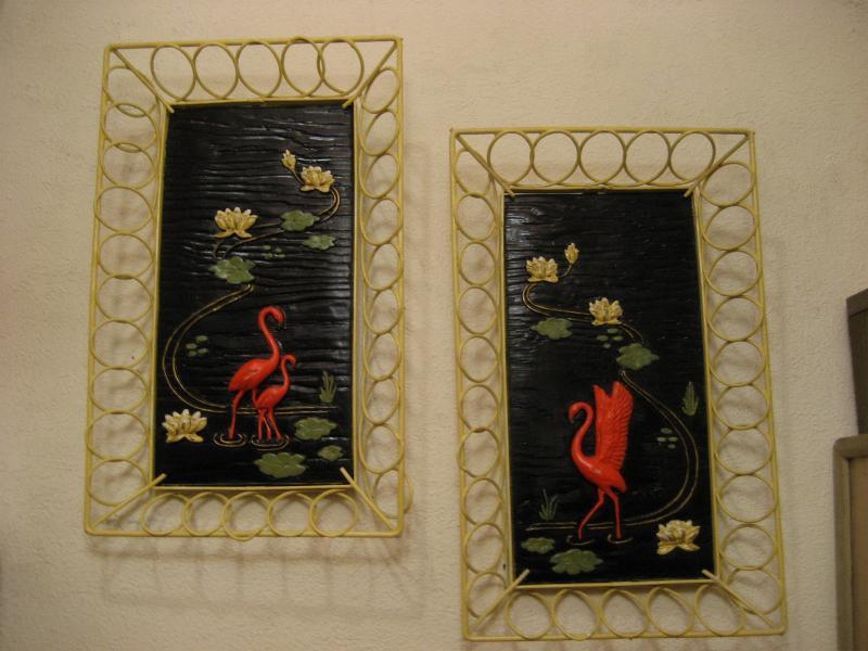 | ビンテージペアフラミンゴウォールデコ 50年代 デボンウェア社 USA. アンアンフレームにチョークメイドのビンテージフラミンゴ壁掛けペア。ブラックベースで赤に近い濃いピンクのフラミンゴで立体加工されています。とても雰囲気が良くクールでGOODなビンテージウォールデコレーションピース! |