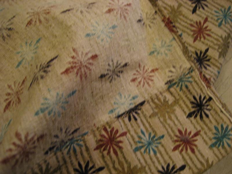 | ビンテージアトミックカーテン / 50-60年代. USA. スターバースト絵柄のビンテージカーテン。カラーはベージュのバックグラウンドベースカラーにターコイズ・ブラウン・ゴールド・ブラックのスターバーストタイププリントとゴールドベースのストライプ。トップ部分はカーテンプリーツが取ってありますので市販のカーテンフックをご利用ください。洋室・和室どちらでもOKな落ち着いたカラーリング。クールでGOODなビンテージウィンドウピース! 素材はコットンです。 |
