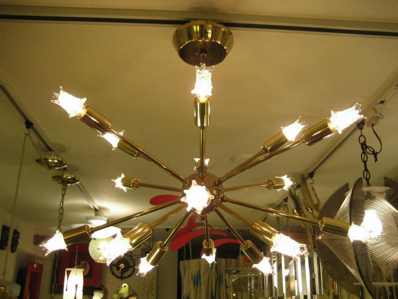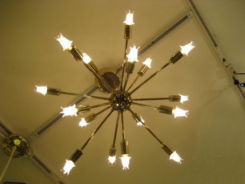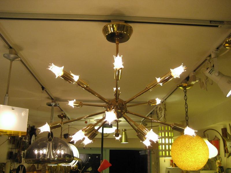 | ビンテージスプートニクランプ 50年代 USA. 16灯タイプ (スター球16個付き) アトミックスプートニクシーリングランプ / シャンデリア 16発のビンテージスプートニクです。クールでGOODなスーパーライティングピース、お部屋の雰囲気一発で変わります! 電源は家庭用引っ掛けシーリングに交換済ですのでかんたん設置、すぐに使用できます。 ※スター球は現行品です。 |