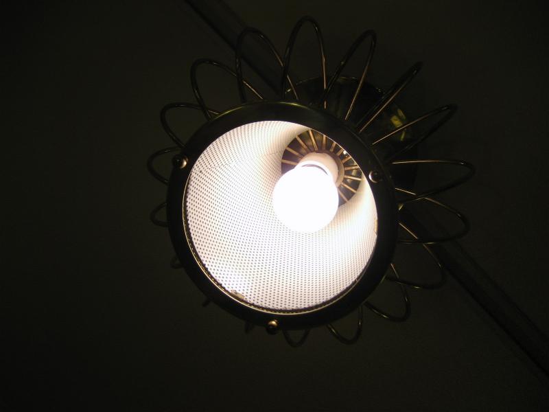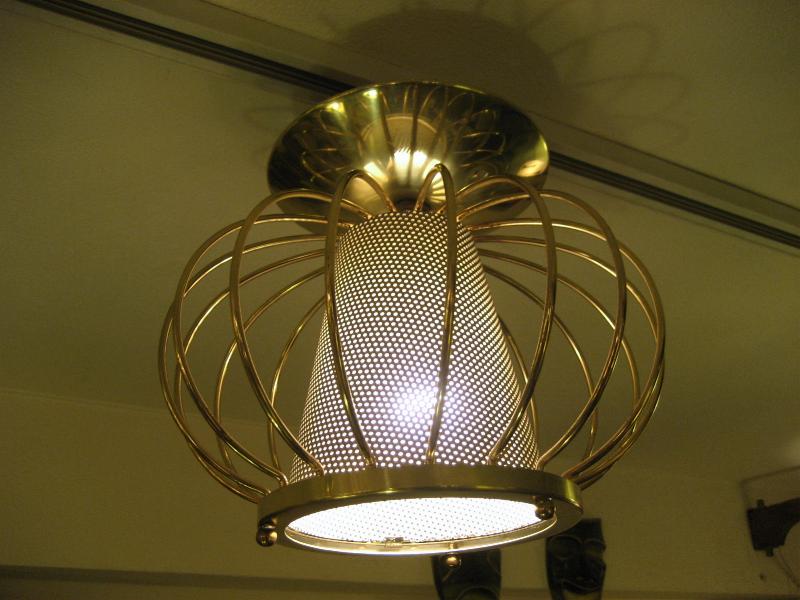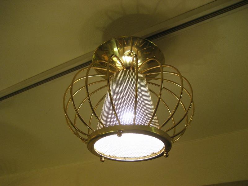 | ビンテージアトミックシーリングランプ / 50-60年代 USA. LIGHTOLIER社製 ゴールドブラスワイヤーフレームにセンターメッシュスポットのアトミックシーリング。アトミックシェイプがGOODなビンテージライティングピース! スプートニクとの相性もバッチリ! 玄関やセカンド照明としても最適です! 電源は引っ掛けシーリングに交換済みですのですぐに設置可能です。 |