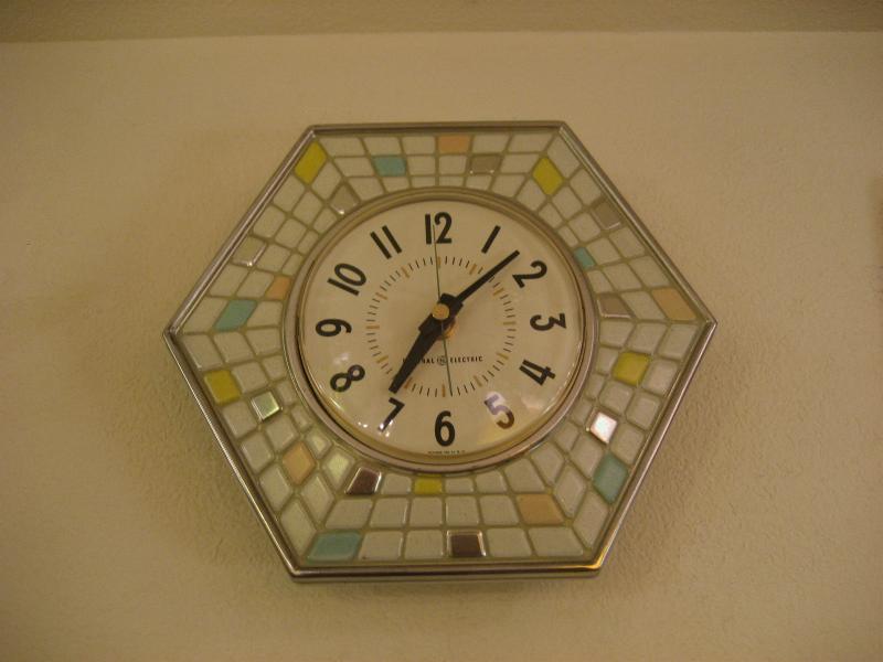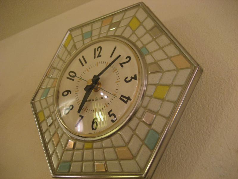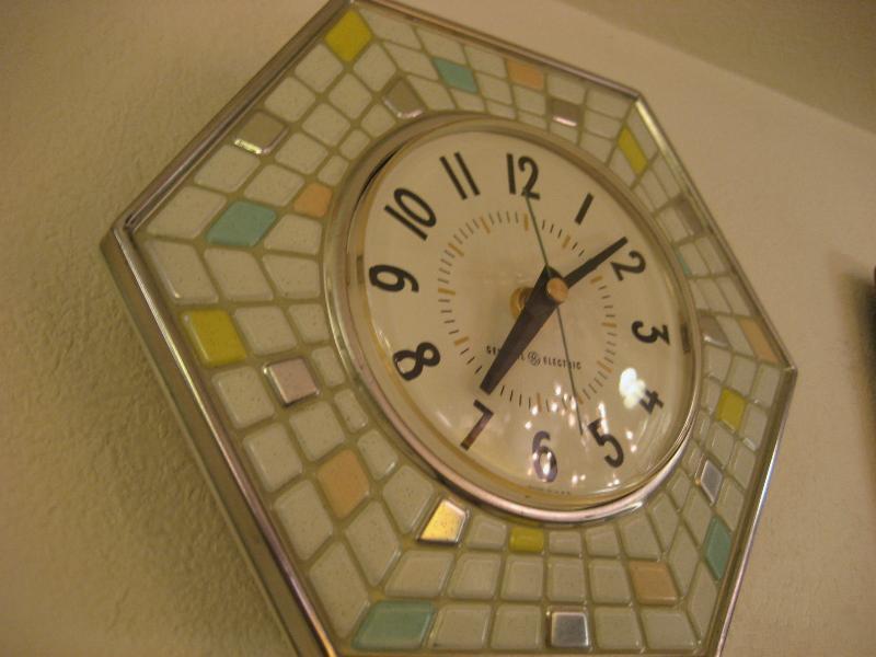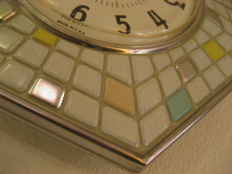 IN USA やさしくて淡い色あいのフェイクタイルデザインがキュートなビンテージモザイク壁掛け時計です。お部屋やキッチン、KIDSルームなどなどに。。。 レトロモダンでGOODなビンテージタイムピースです! ムーブメントはバッテリータイプ(単3x1個使用)に交換済みですので時間も正確です。 |