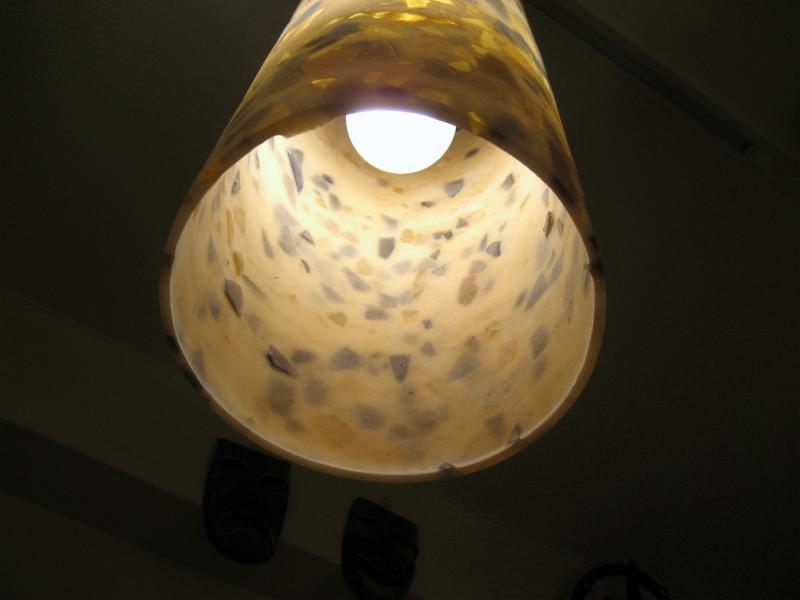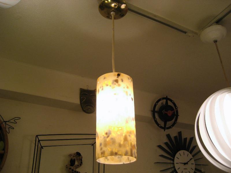 | ビンテージペンダントランプ / 50-60年代 USA モザイク風のアクリル成型シリンダーシェードのペンダントランプ。光と影の部分が独特なあかりを演出しているクールでGOODなビンテージライティングピース! 電源は引っ掛けシーリングに交換済みですのですぐに設置可能です。 |