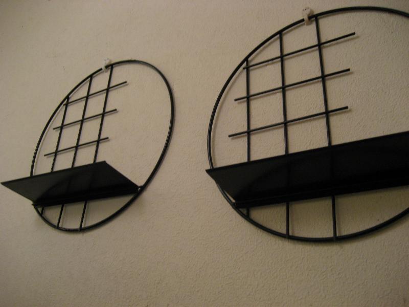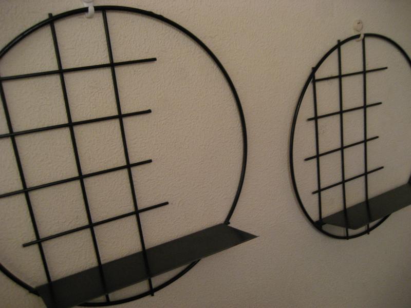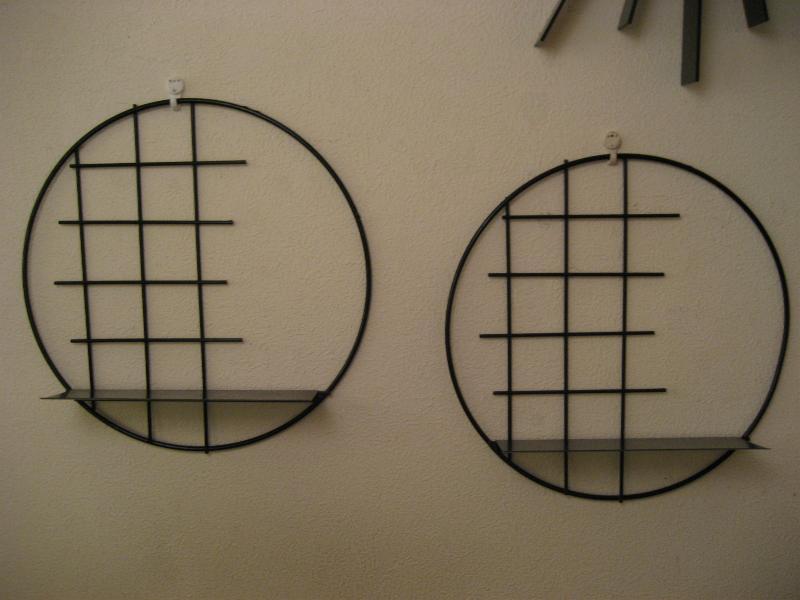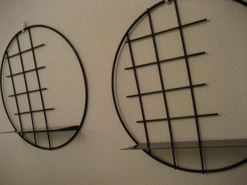 | ペアビンテージアイアンウォールシェルフ / 50年代 USA. ラウンドフレームにスクエアアクセントのブラックアイアンシェルフ。シェルフシッターや置物などのディスプレイにクールでGOODなビンテージデコレーションピース! ※写真内の飾り物は含みません |