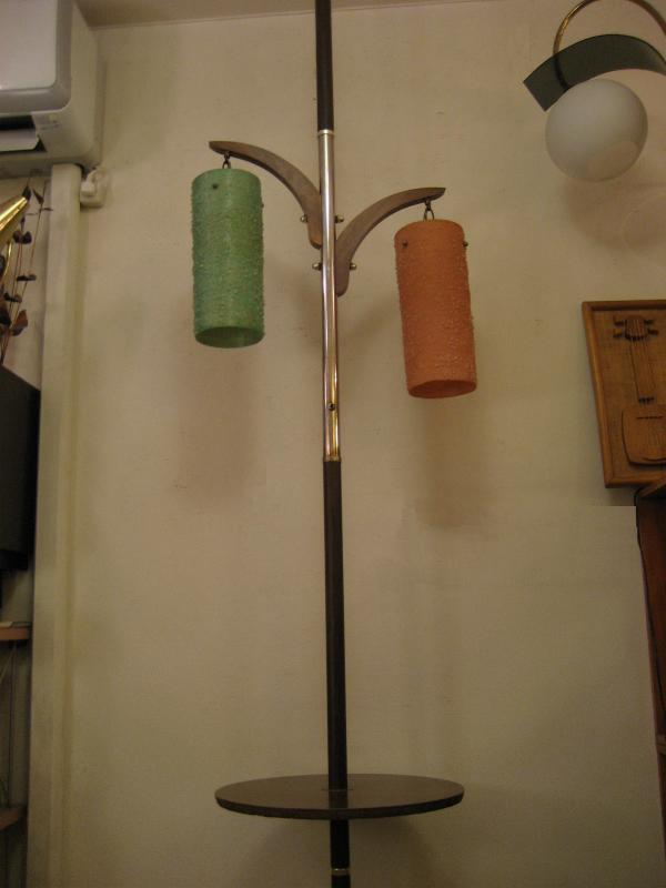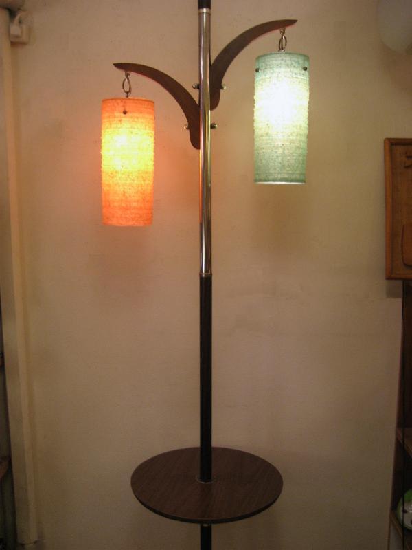| ビンテージフロアポールランプテーブル / 50-60年代 USA. テーブル付きのビンテージフロアランプです。天井と床に突っ張らせるスプリングロッド。シェードは2カラーのアクリルメイドシリンダーシェイプでウッドアームからそれぞれ吊り下げてあるタイプ。ロッド中間にラウンドテーブルがセットできますのでソファやチェアサイドにセッティングしてもOK。。。 クールでGOODなミッドセンチュリーライティングピース! 電源は家庭用コンセント対応コードで、スイッチはポール中央に付いています。 |
