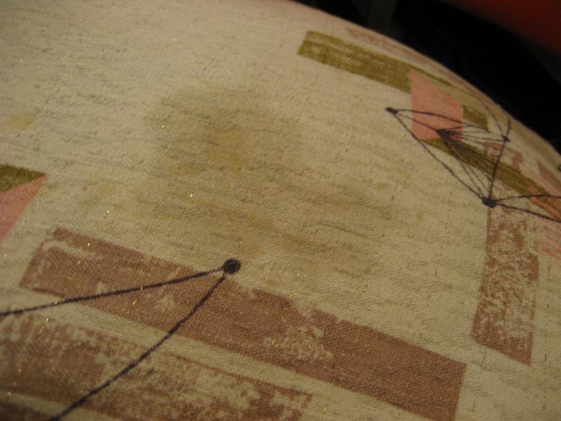 | A : 4〜5ヶ所に汚れが見られます。スレや破れ、穴などはありません。全体的に良いビンテージコンディションです。 B : 片面に油シミのようなわじみが見られます。スレや破れ、穴などはありません。全体的に良いビンテージコンディションです。 ※どちらも写真参照ください |