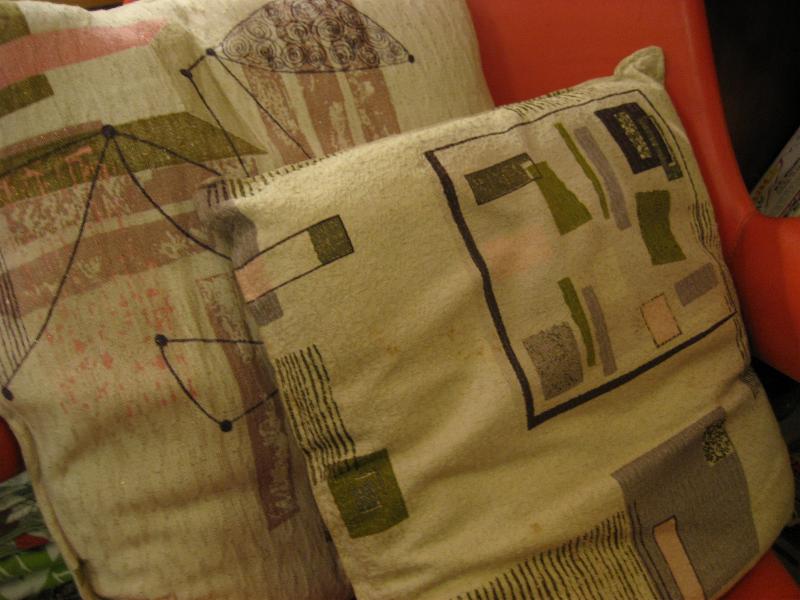 | ビンテージ50'sファブリッククッション / 50年代 USA クールなアトミック絵柄のファブリックで作られたクッション2種類です。ソファーやラウンジチェアーなどにGOODなビンテージピース! |