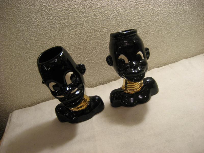 | ビンテージペアアフリカンデコプランター / 50年代 USA. 陶器製のアフリカン置物。頭部がプランターベースになっています。アメリカミッドセンチュリーならではの異文化カルチャーであるアジア・オリエンタル・中東などに並び代表されるアイテムでもあります。クールでGOODなビンテージデコレーションピース! |