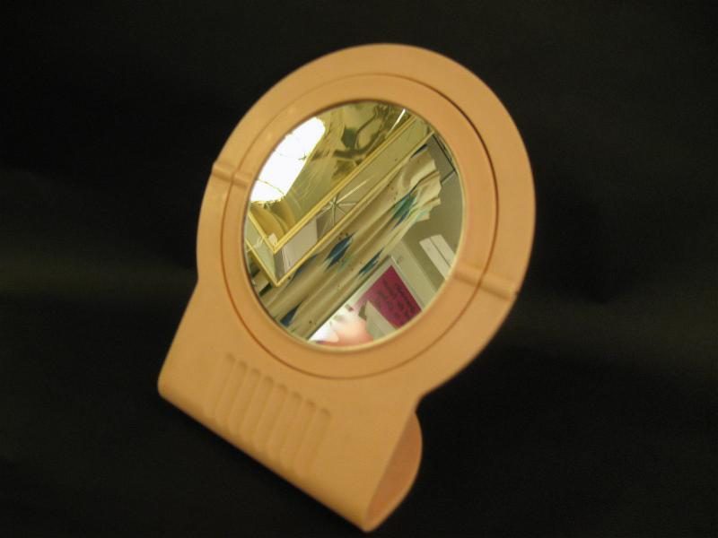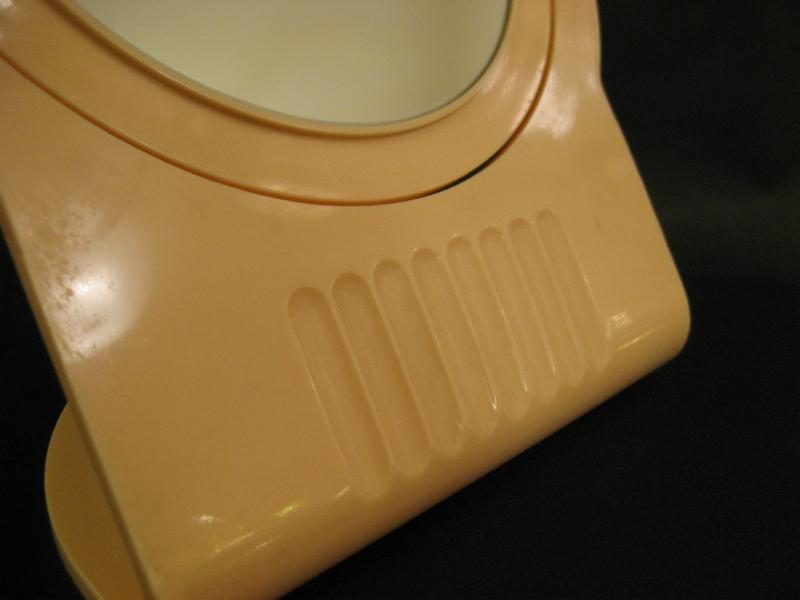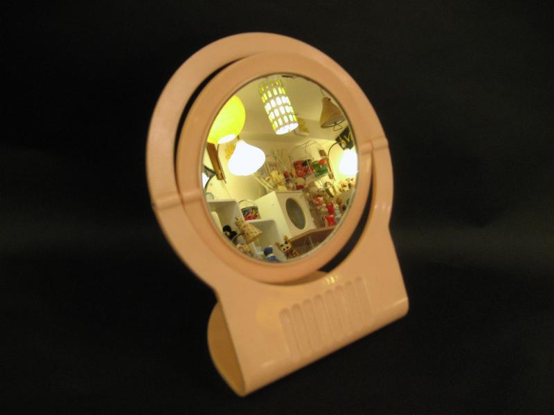 | ビンテージメイクアップデコミラー / 50-60年代 USA ベビーピンクカラーのオールドプラスチックフレームメイクアップシェルフミラー。ミラーは片面クローズアップタイプになっています。クール&キュートでGOODなビンテージバニティピース! |