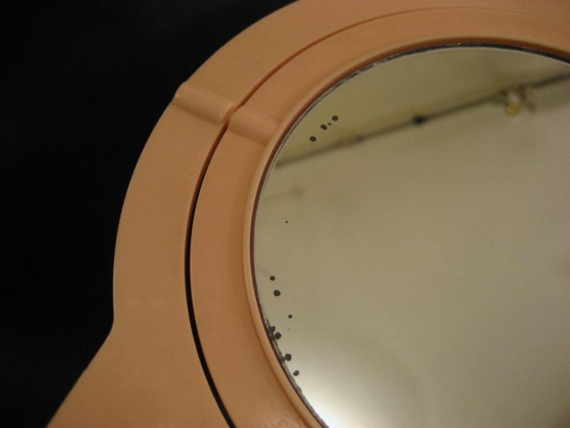 | 特に目立つようなダメージなどはありませんが多少のスレや小キズ程度は見られます。ミラー部分にヒビやカケなどはありませんが写真のように端部分に少しシミが見られます。全体的に良いビンテージコンディションです。 | |