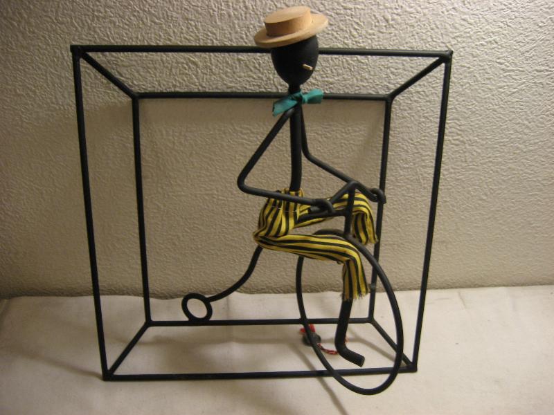 | ビンテージワイヤーフレームウォールデコ / 40-50年代 USA. MADE IN DENMARK ビンテージのアイアンウォールデコ。ブラックアイアンフレームで前輪のデカい自転車に乗った大道芸人?でしょうか。。。 ウォールディスプレイにGOODなビンテージデコレーションピース! |
