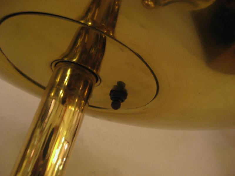 | 多少の変色(ブラス特有の黒ズミ)と薄いサビ程度、アッパーシェードに少しゆがみが見られますが全体的に良いビンテージコンディションです。 | |