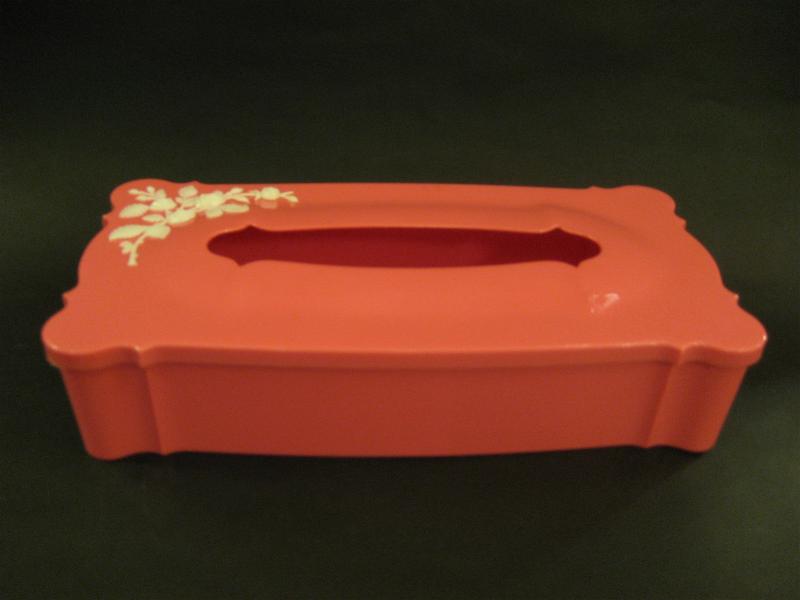 USA. デッドストック デッド(未使用)のプラスチックメイドティッシュボックス。濃厚カラーのピンクボディに立体フラワーデコ。キュートでGOODなビンテージバニティピース! |