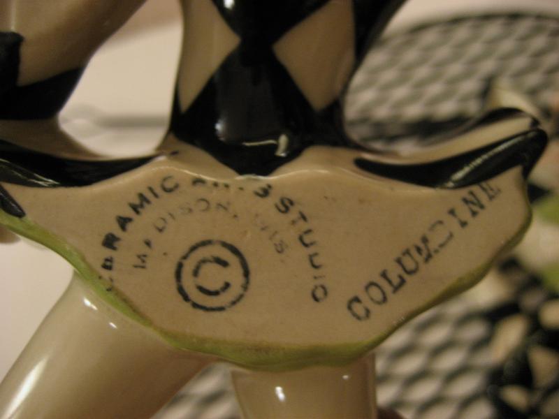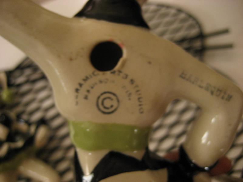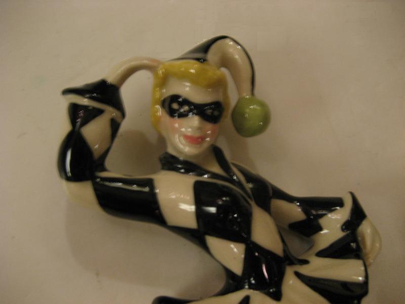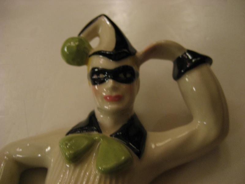 IN USA. セラミックアーツ社の代表的な陶器製ハーレクイン壁掛けで、1954年の作品。セラミックアーツスタジオの洋書にも当然記載されています。ブラックアーガイルのハーレクインコスチュームにグリーンアクセント。クールでGOODなビンテージウォールピース! ※写真のアイアンウォールマウントは別売りです |