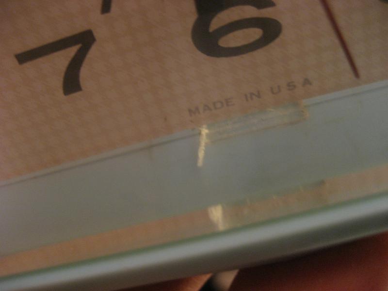 IN USA. アトミックスクエアシェイプのビンテージ置時計。文字盤はクリームベースに淡く細かいチェック柄、ブラックインデックス&ハンド。クールでGOODなビンテージタイムピース! ムーブメントはバッテリータイプ(単3x1個使用)に交換済みでですので時間は正確です。 |